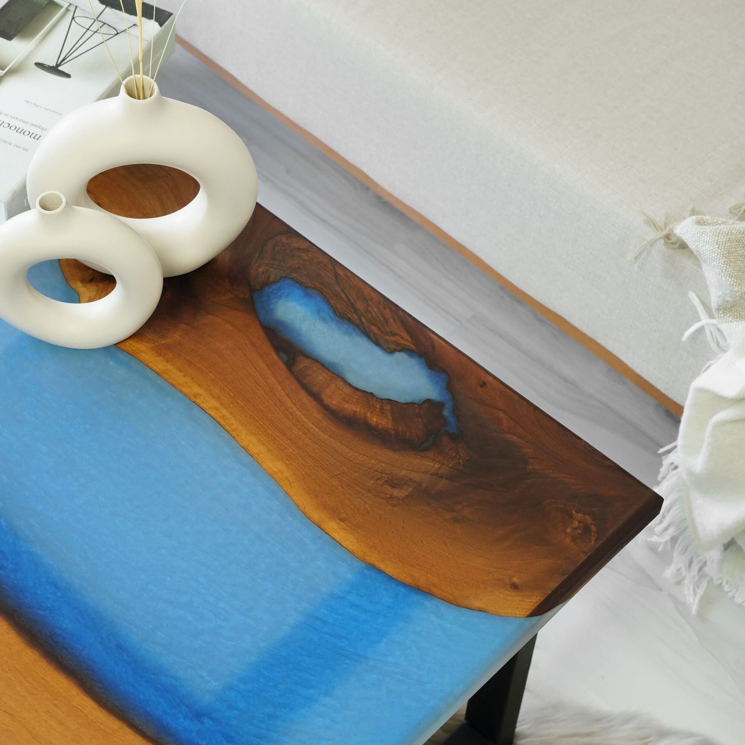 The Perfect Fusion: Experience the harmonious blend of art and functionality. The natural beauty of walnut wood complements the eye-catching epoxy resin, creating a stunning focal point for your space.