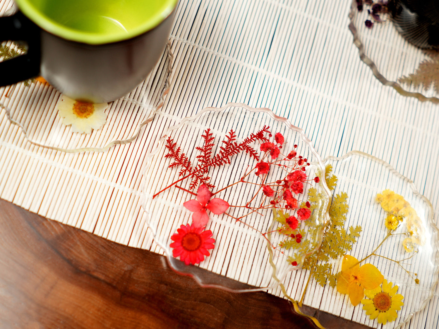Add a touch of natural elegance to your home. Order your set of resin flower coasters today!