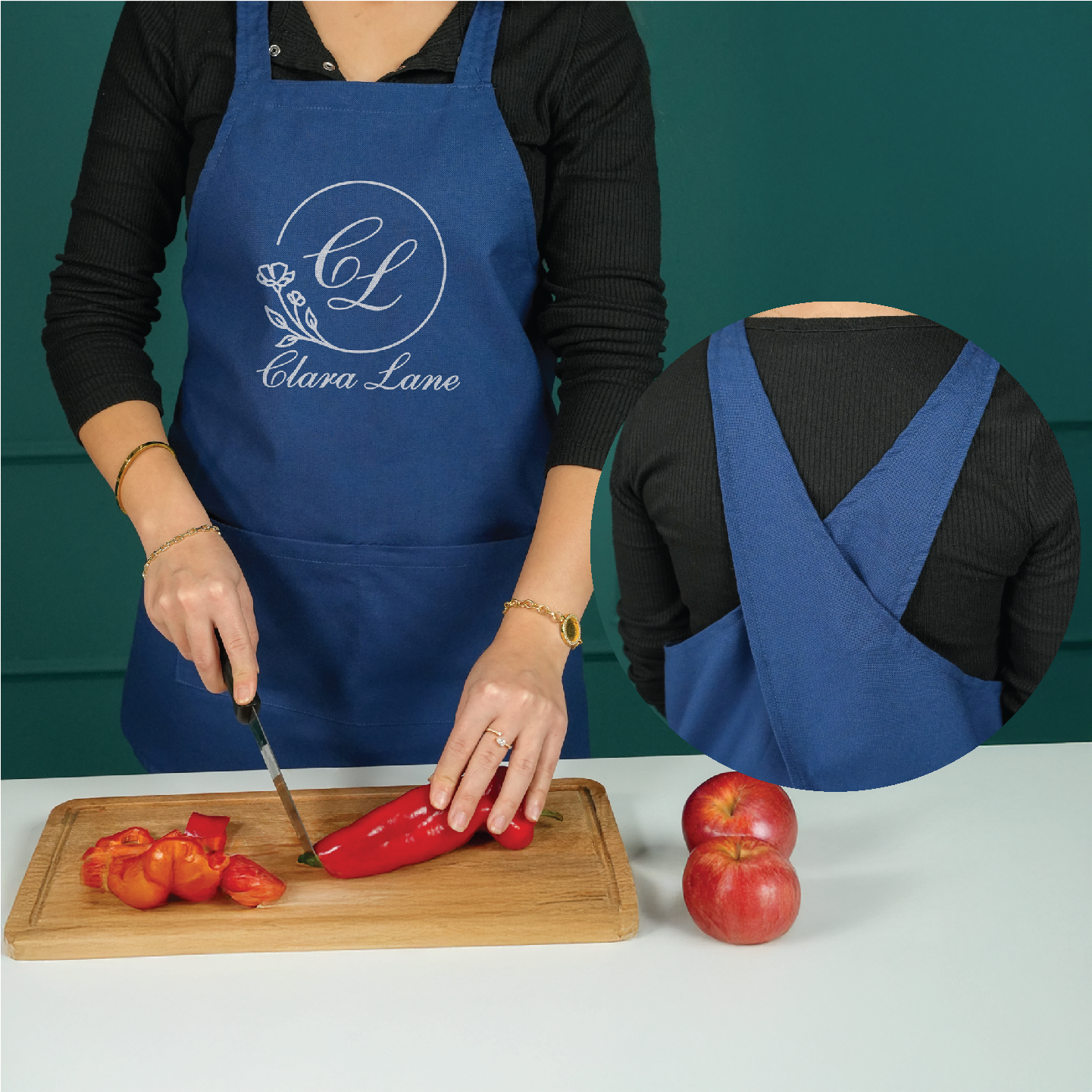🌟 Custom Cotton Pinafore Apron – No-Tie Cross-Back Comfort for Chefs and Crafters
