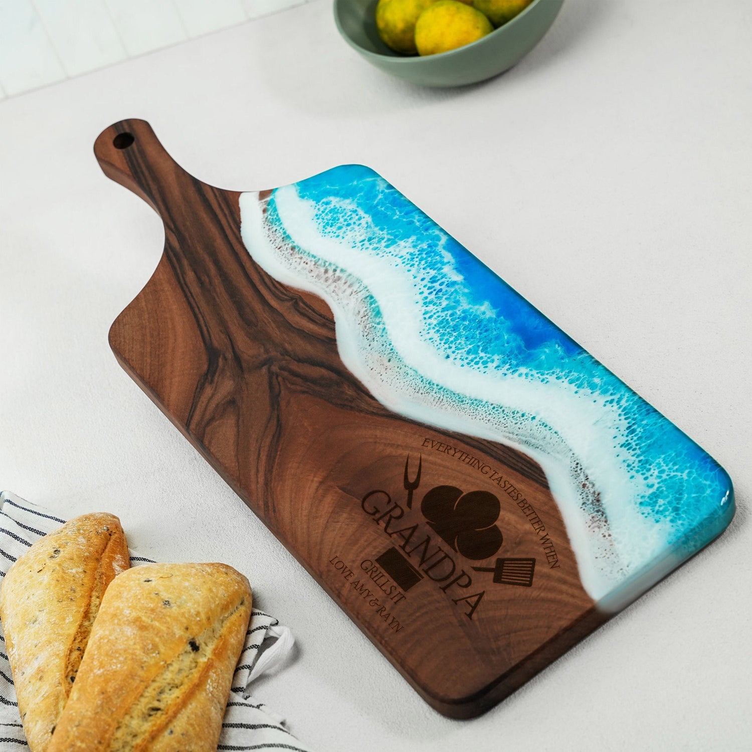 Personalized Resin Walnut Cutting Board, Custom Grandpa Gifts, Father's Day Gift Ideas, BBQ Live Edge Serving Board, Gifts for Grandpa
