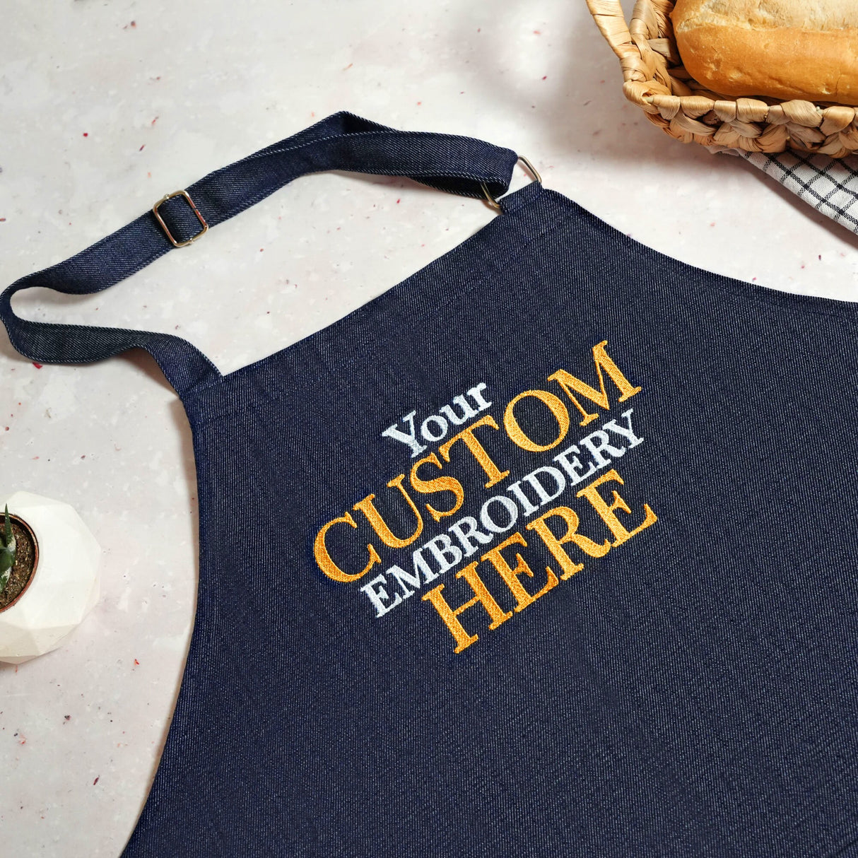 Embroidered Personalized Apron, Custom Chef Apron, Personalized Gift, Gift for Mom, BBQ Dad Gift, Denim Apron, Kids Apron, Kitchen Apron