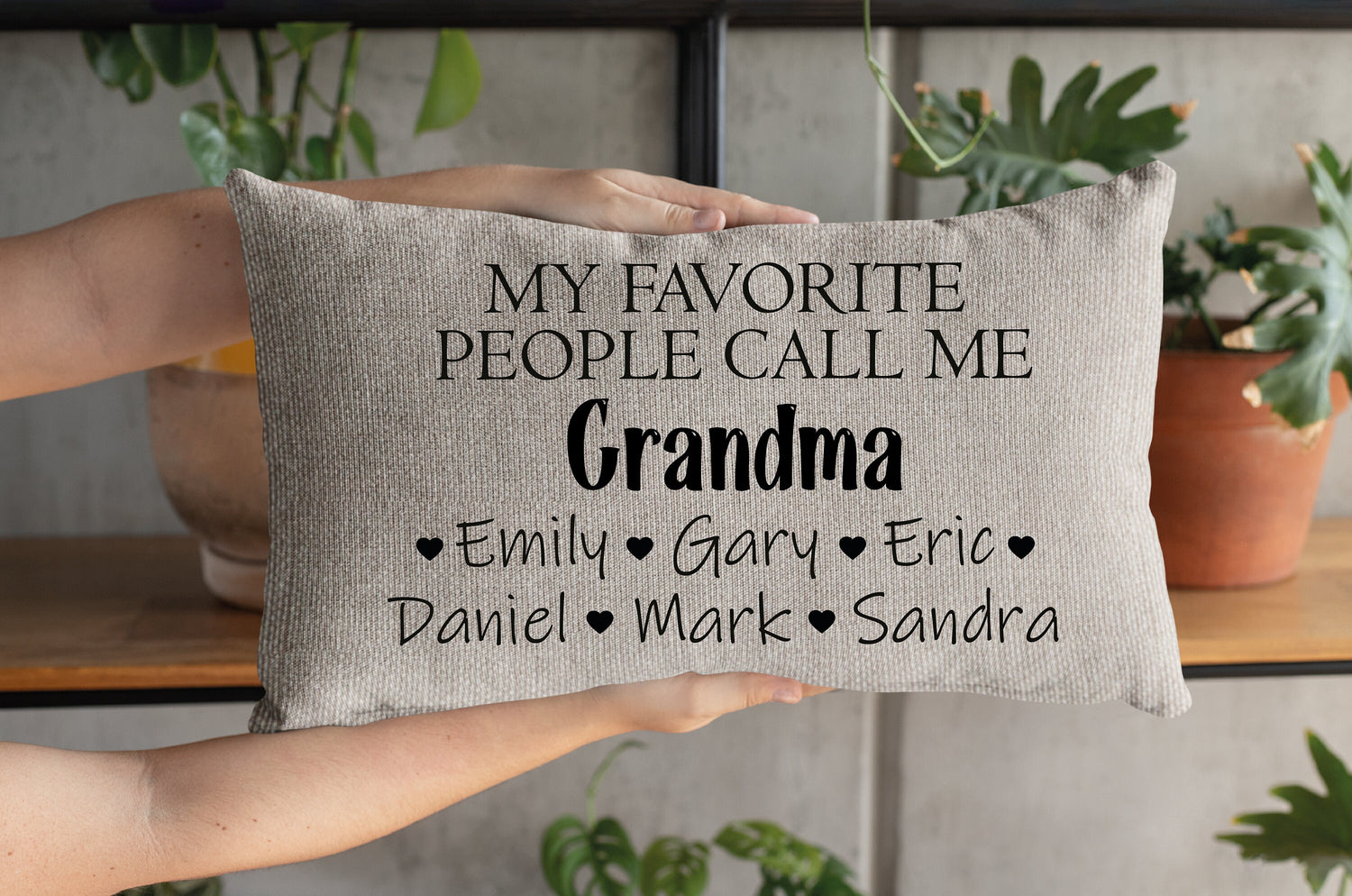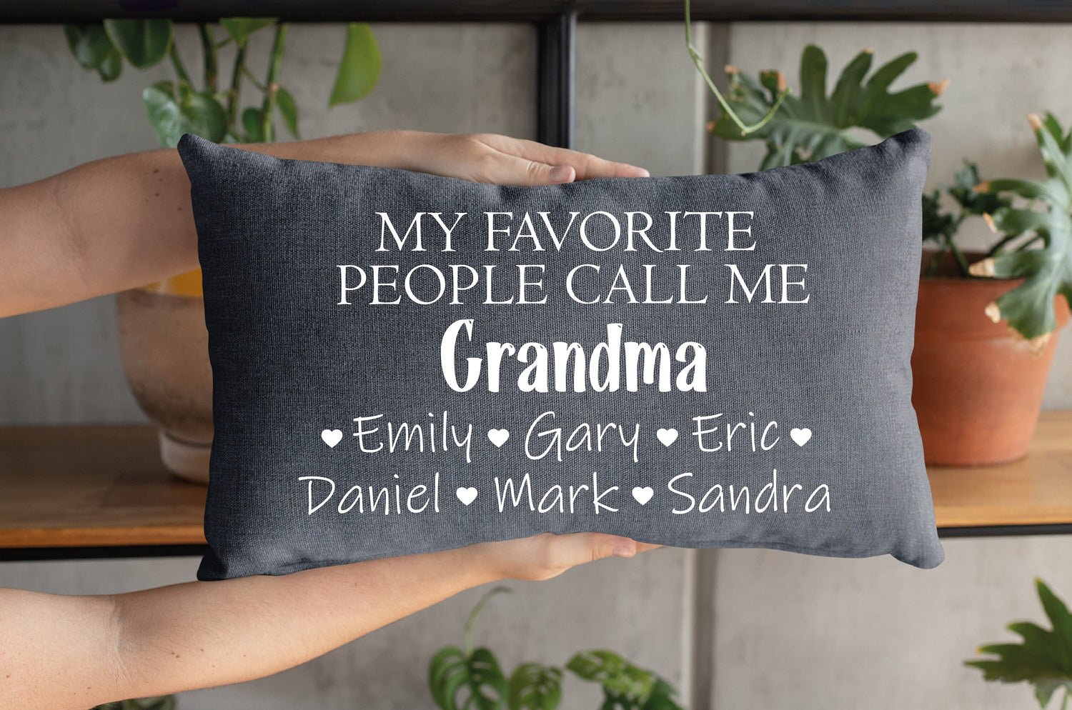 This isn't just a pillow, it's a heartwarming gift that celebrates the special bond between grandchildren and their Grandma. Imagine this decorative accent gracing her living room, adding a touch of love and warmth to her bedroom, or serving as a cherished keepsake for years to come.