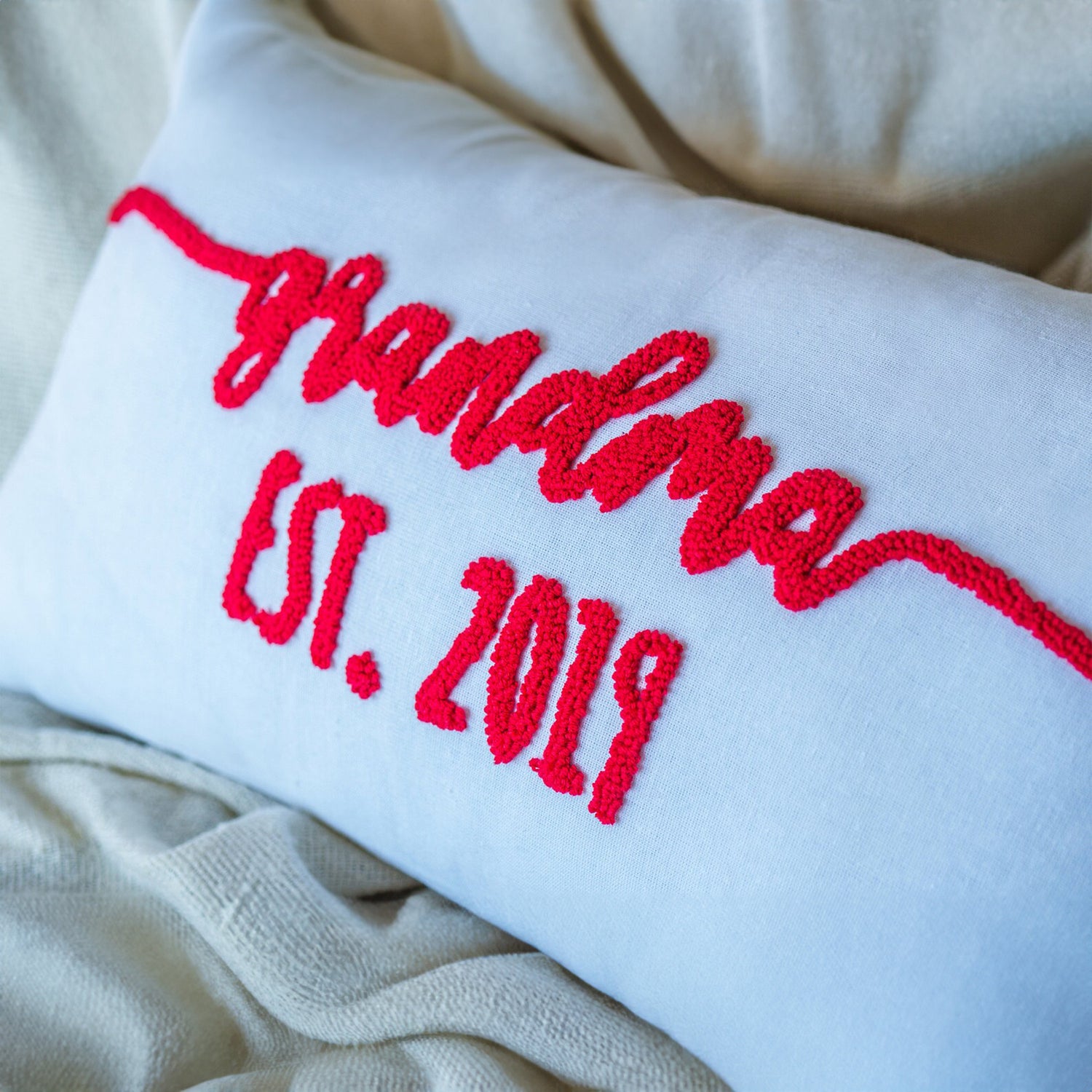 Personalized Grandma Embroidery Pillow, Punch Needle Nana Pillow, Grandma Grandpa, Baby Announcement Pillow, Lumbar Pillow, Accent Pillow