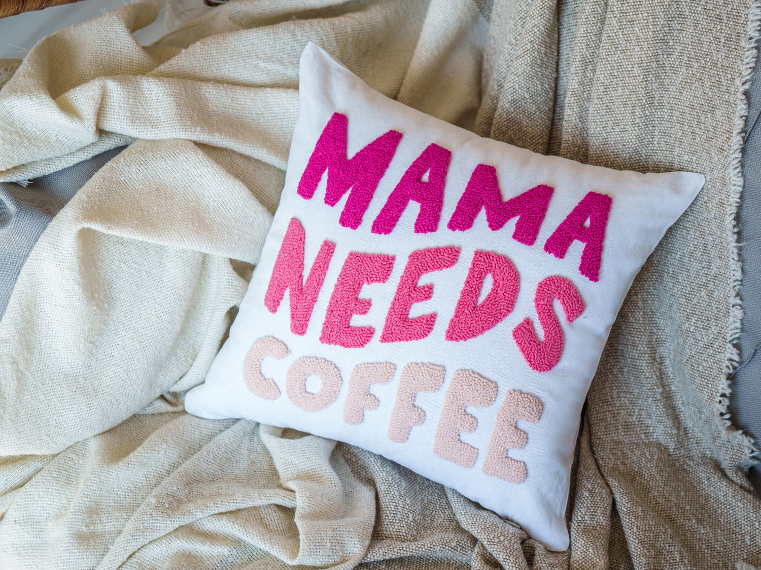 Personalized Mothers Day Handmade Pillow, Mom Gift Idea, Gift for Grandma, Custom Gift from Kids, Punch Needle Mama Pillow, Pink Pillow is backordered and will ship as soon as it is back in stock.