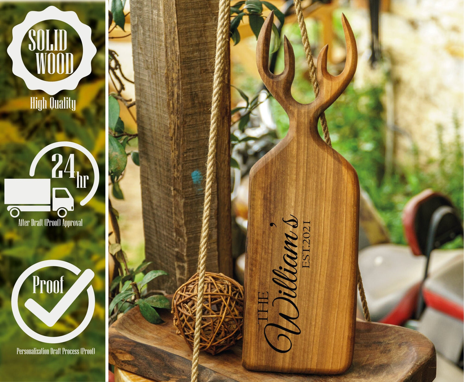 Personalized Wood Board, Antler Decor, Moose Antler, Cutting Board, Cheese Board, Charcuterie Board, Engrave Walnut Board, Personalized Gift is backordered and will ship as soon as it is back in stock.