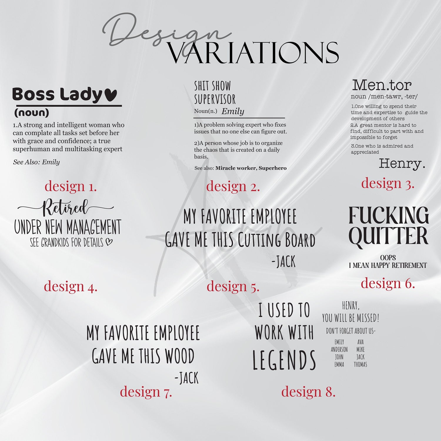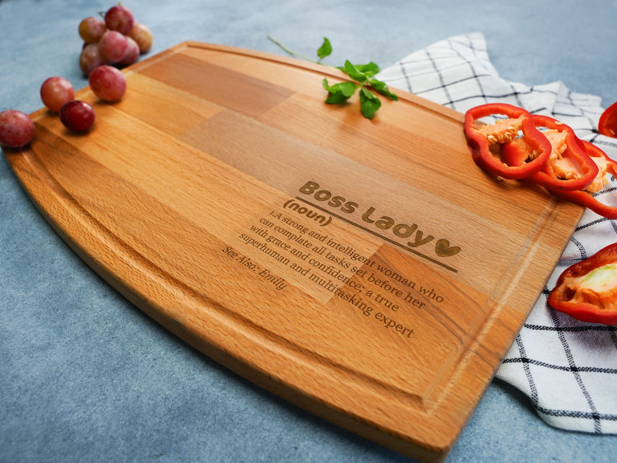 Show your appreciation for a special person in your life with a unique and personalized cutting board. This custom-made board is perfect for bosses, colleagues, friends, family members, or moms who love to cook or entertain. It's a great gift for Christmas, retirement parties, or any occasion that calls for a personalized touch.