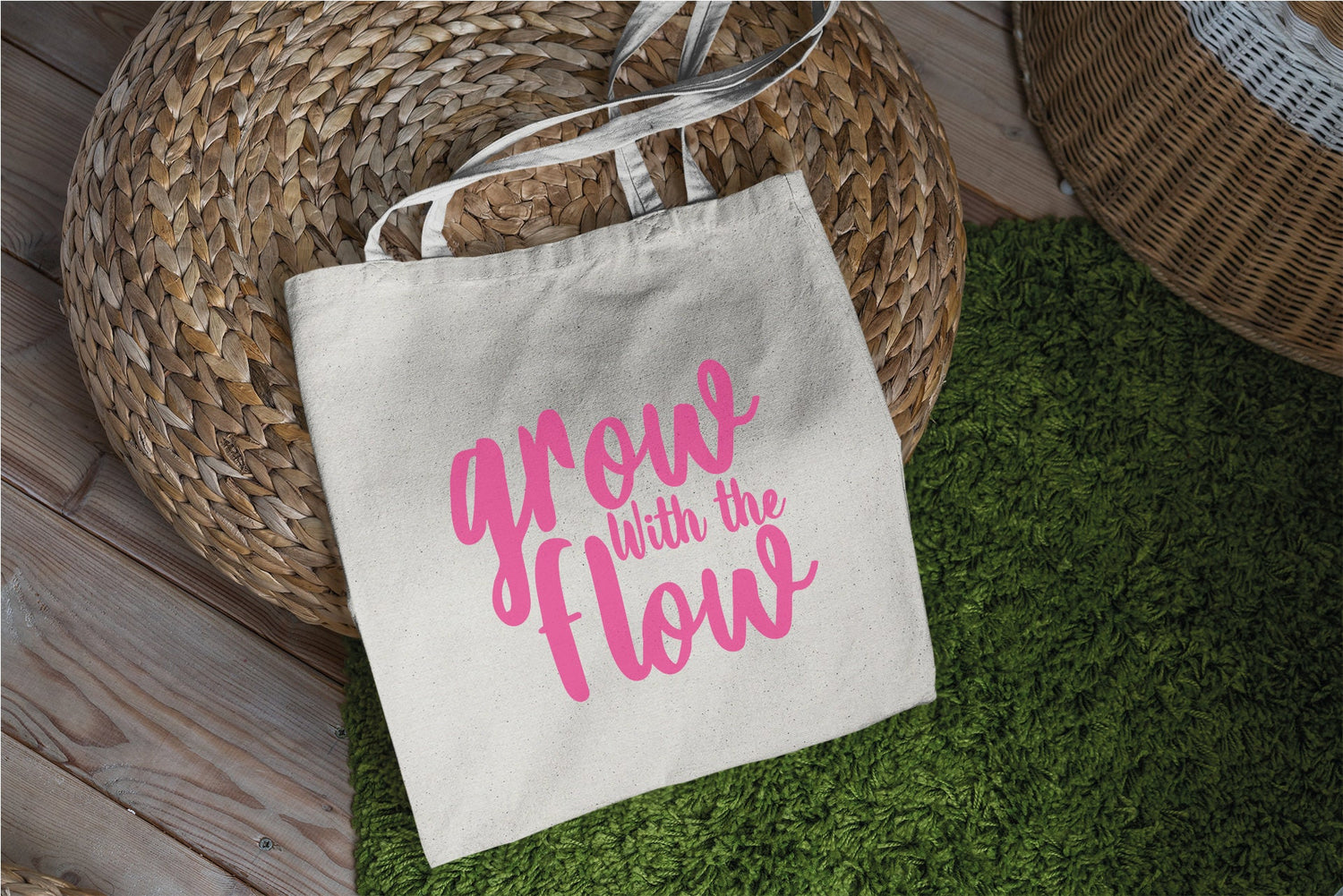 Carry your positive vibes with you wherever you go! This stylish and customizable tote bag, featuring the uplifting quote "Grow With The Flow," is the perfect way to inspire yourself and others.
