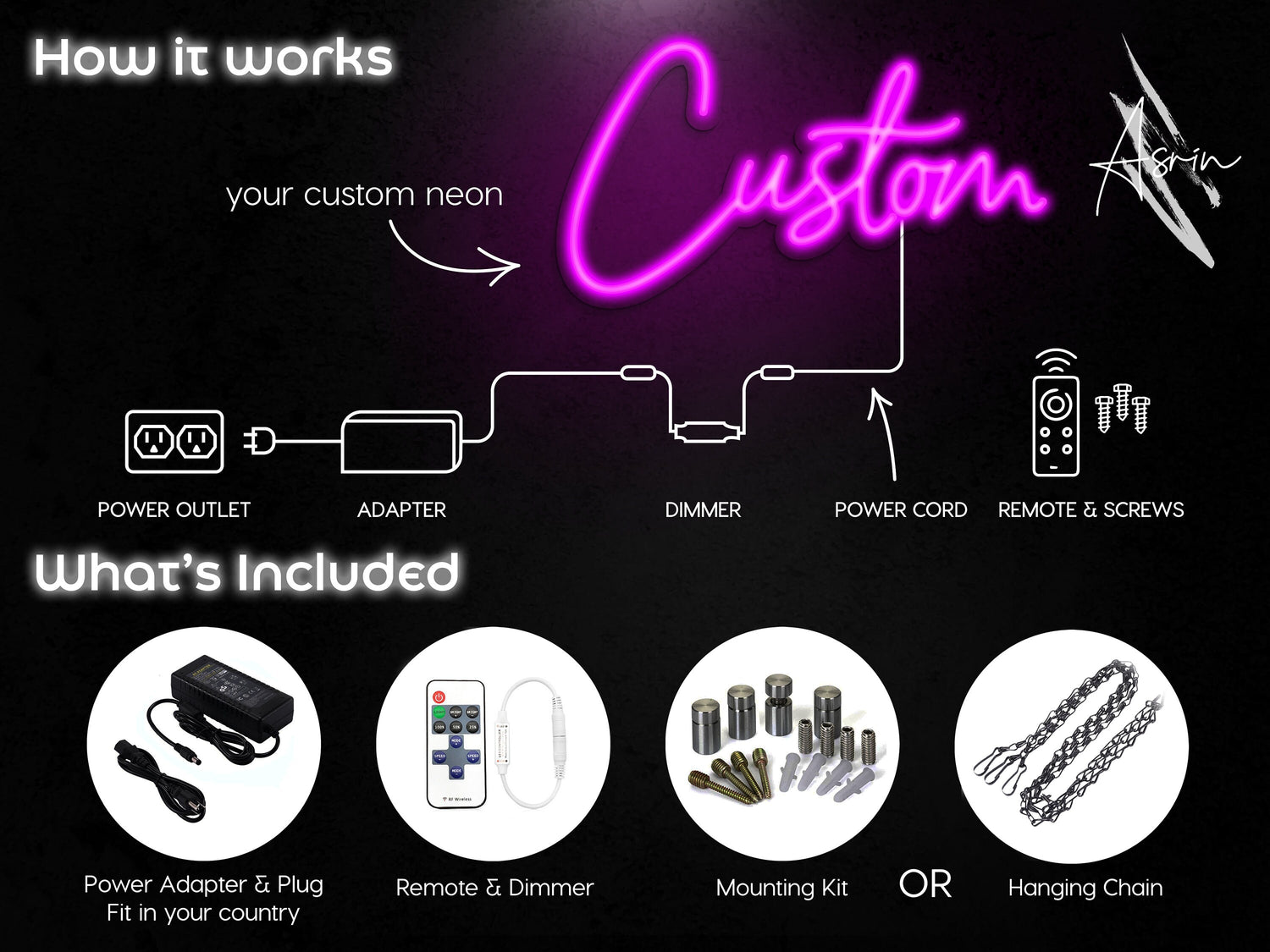 Easy to Install & Use: Each sign comes with a convenient 5-meter clear power cord, a dimmer remote control, and pre-drilled holes for easy installation.
