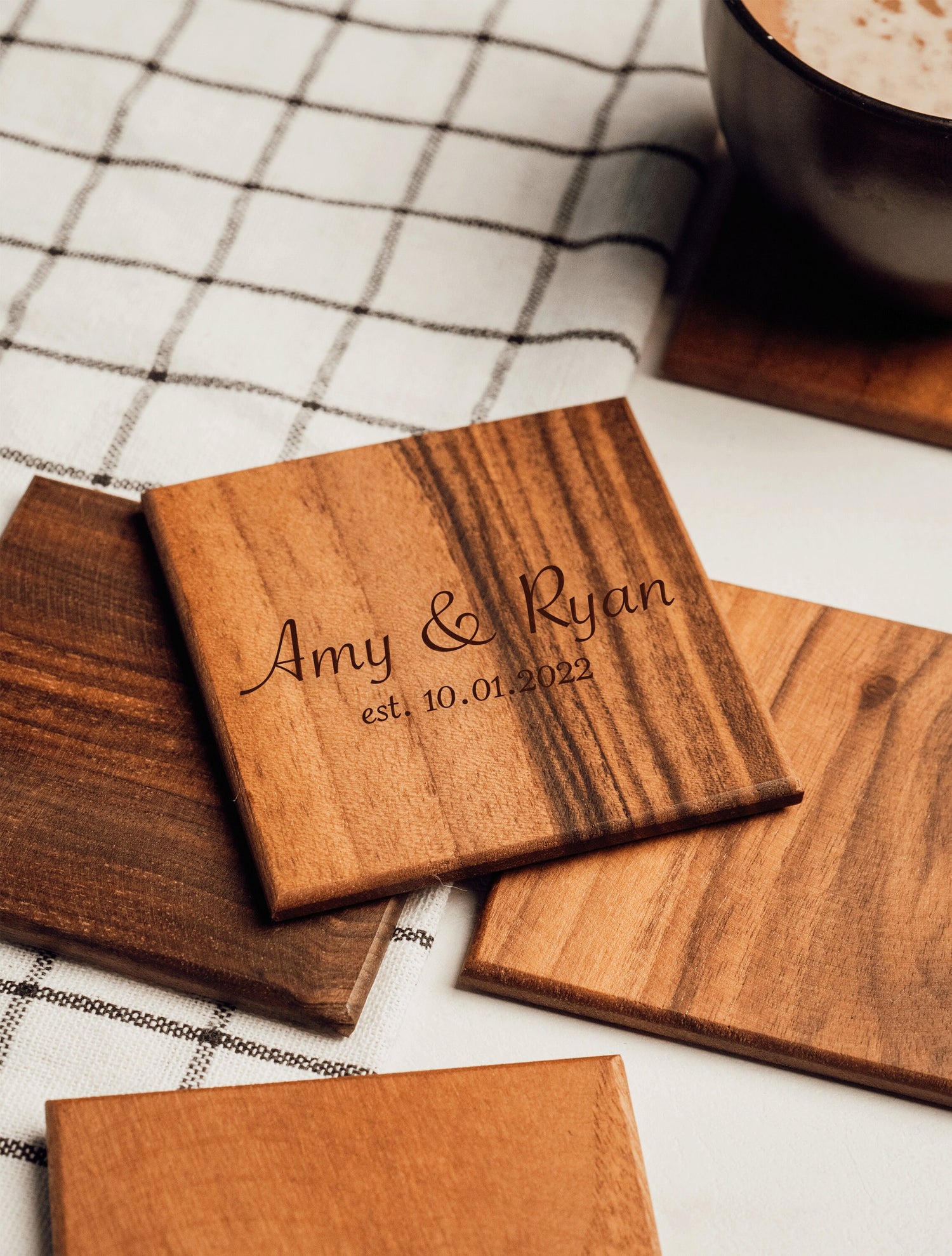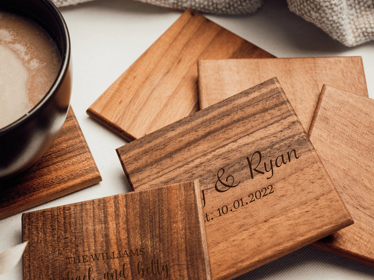Elevate your home décor, impress your guests, and give gifts that are as thoughtful as they are beautiful with these personalized wooden coasters!