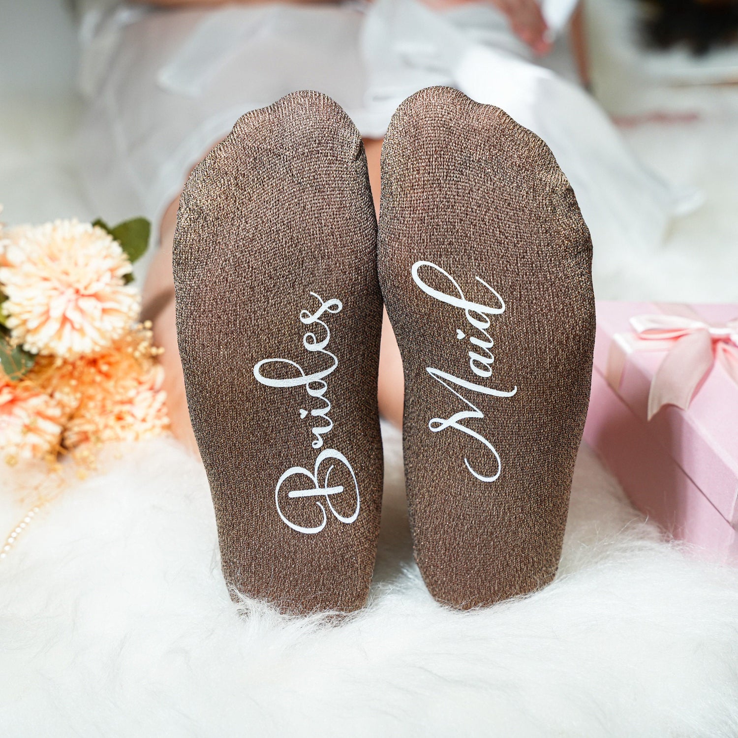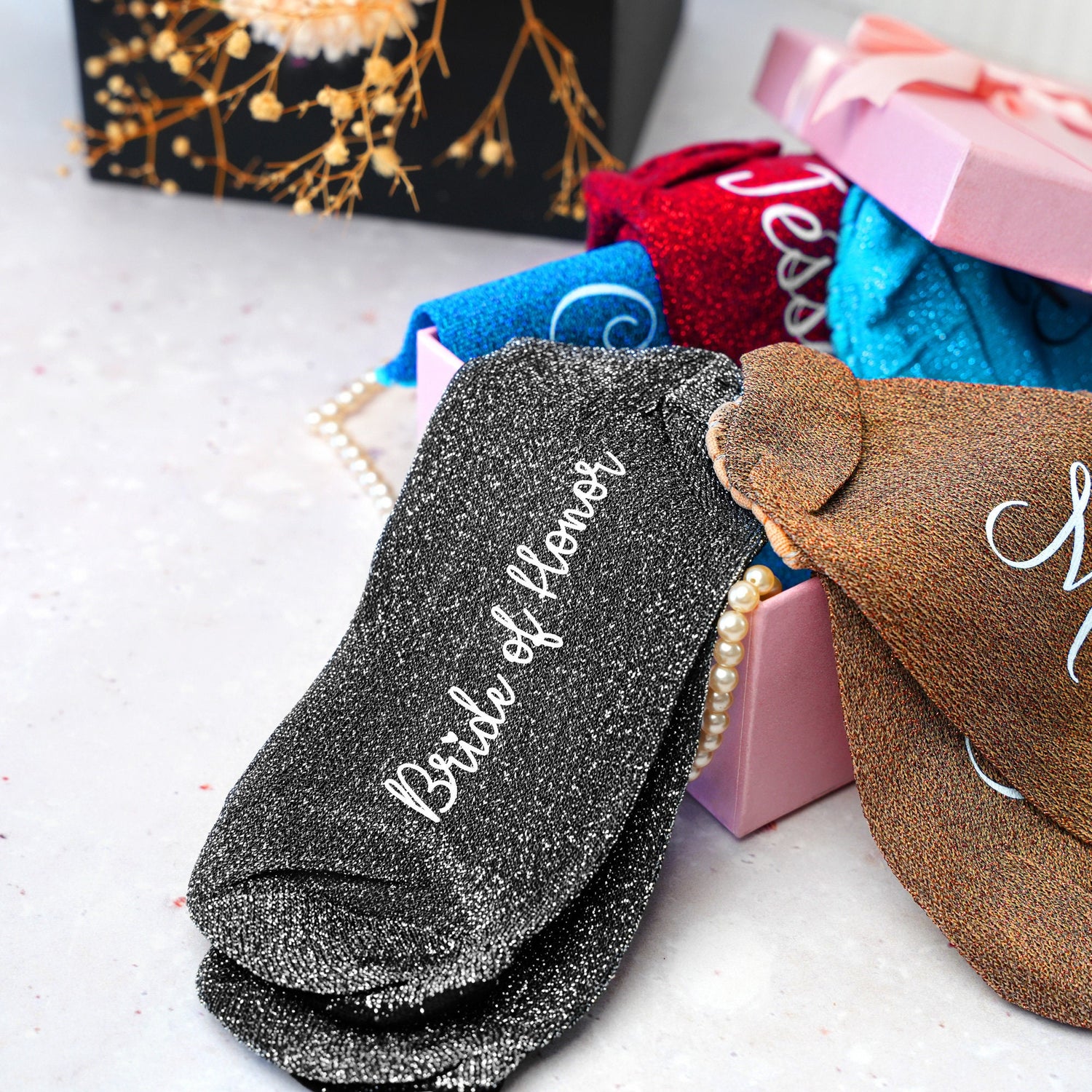 Matching Bridesmaid Socks, Personalized Socks for Bride, Bridal Party Socks, Maid of Honor Proposal Idea, Bridesmaid Gift Basket Filler