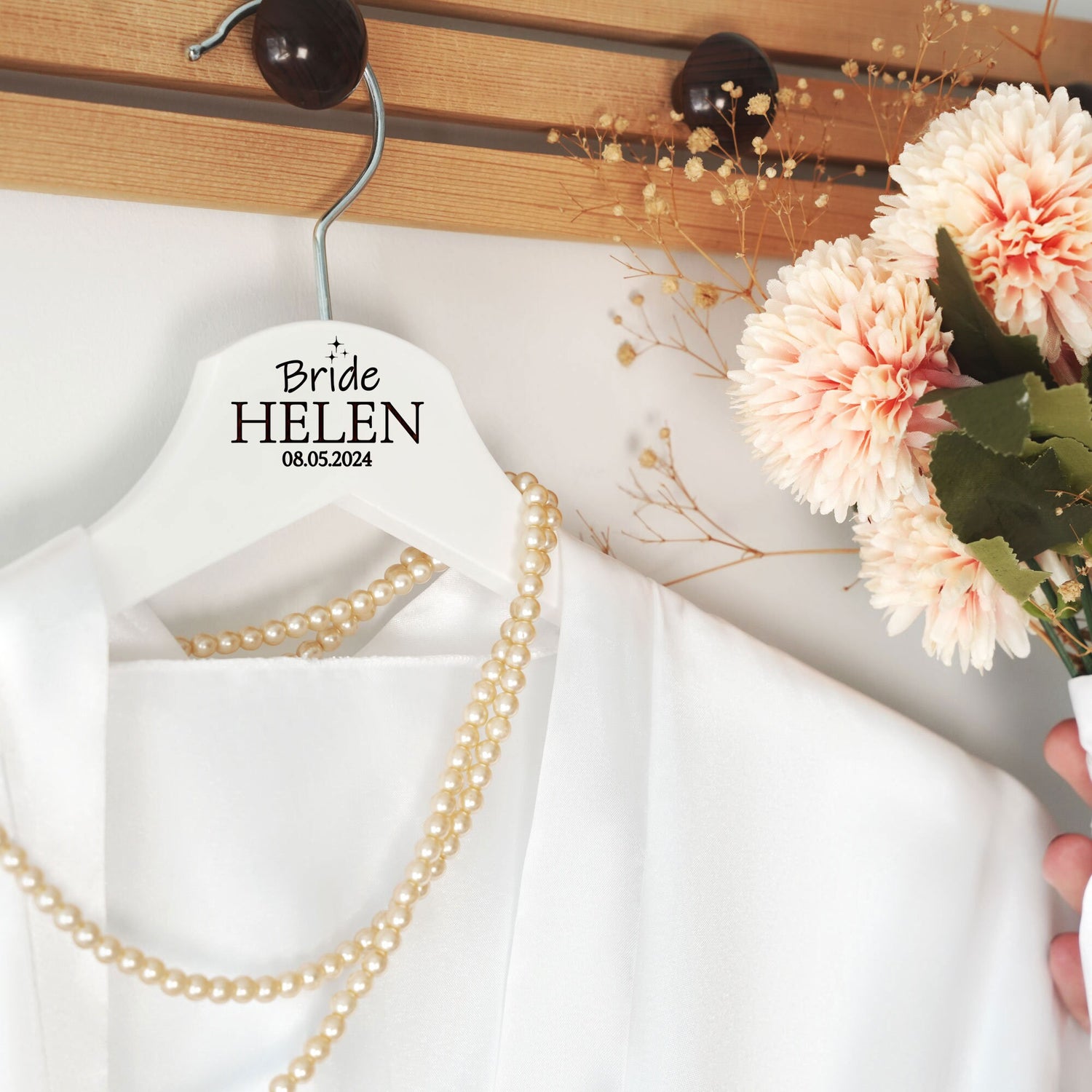 Make your wedding day even more special with these personalized wooden hangers.