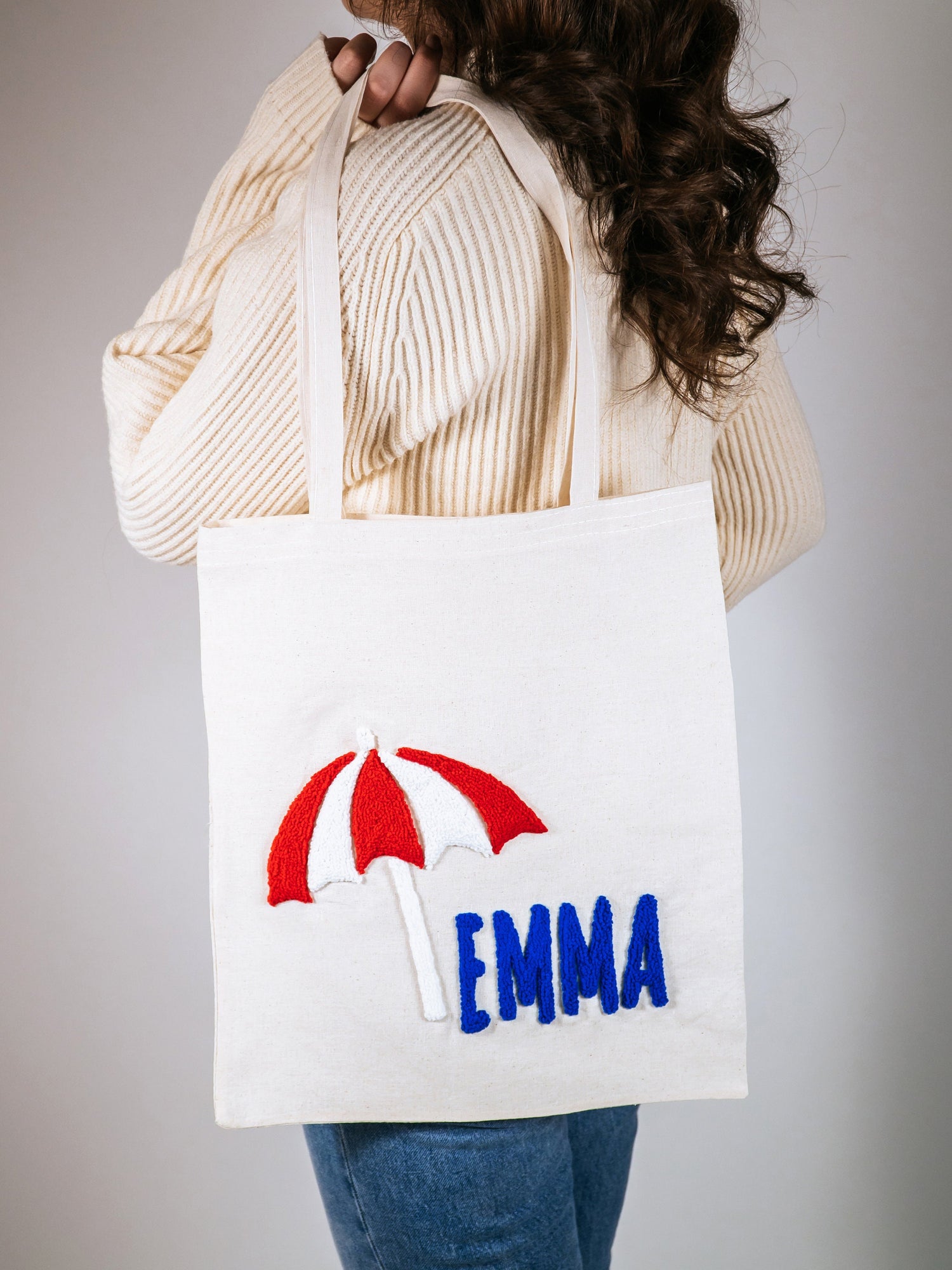 Personalized Embroidery Tote Bag, Summer Gift, Kid Name Punch Needle Canvas Bag, Monogramed Beach Bag for Kids, Canvas Bag, Shopping Bag