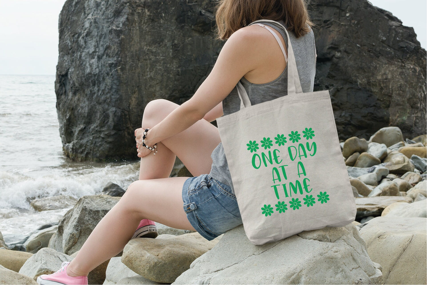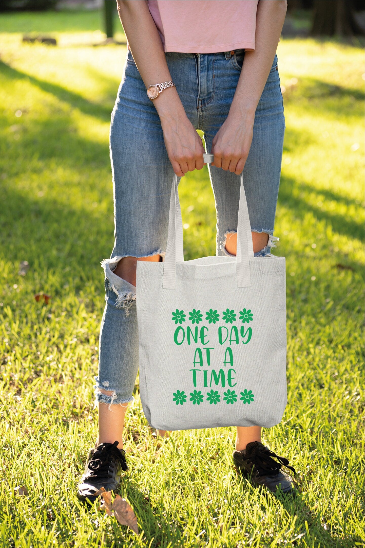 Tote Bags For Women, Canvas Tote Bag, Shopping Tote Bag, Reusable Tote Bag, Market Tote Bag, One Day At Time, Cotton Tote Bag is backordered and will ship as soon as it is back in stock.