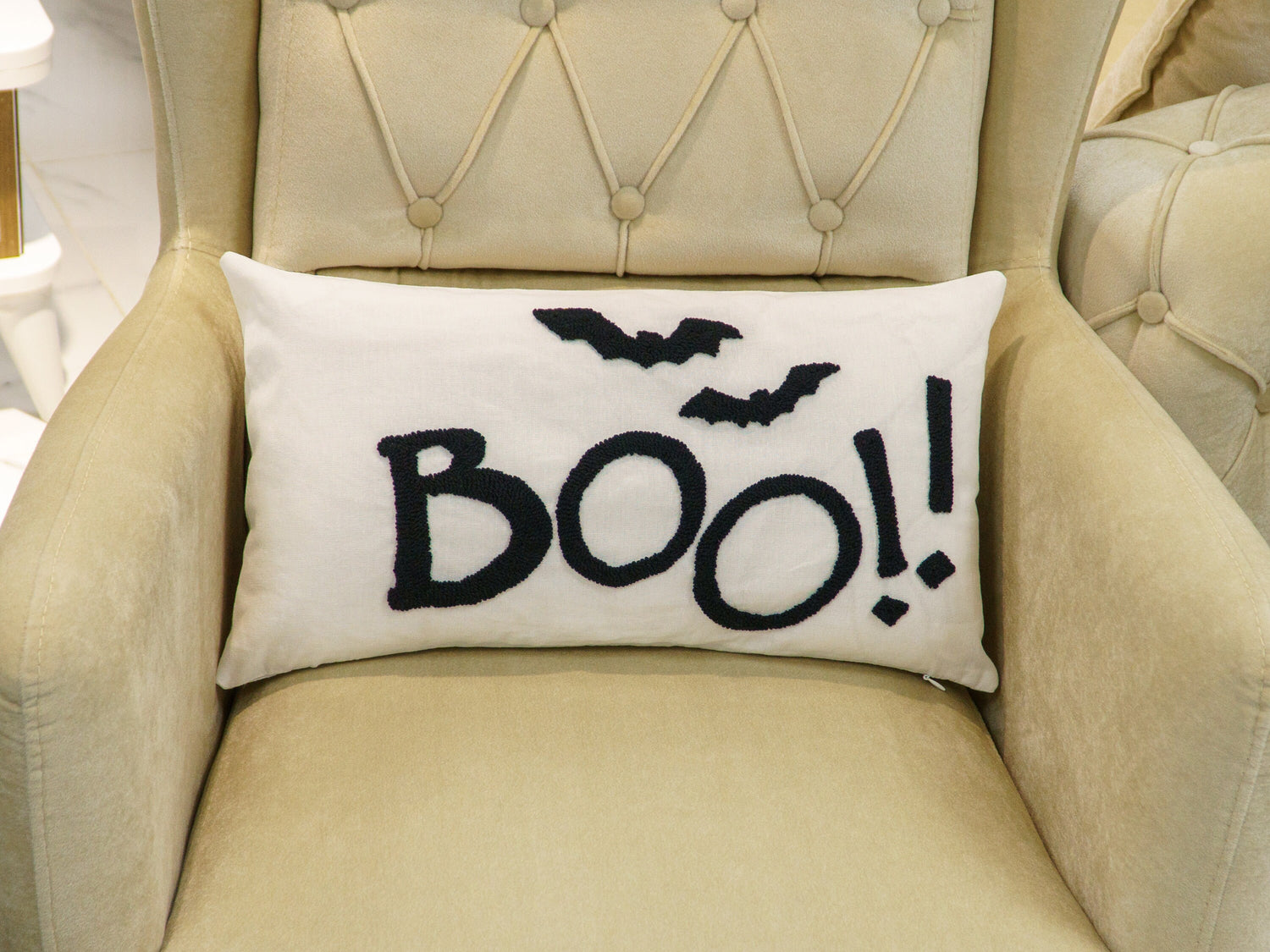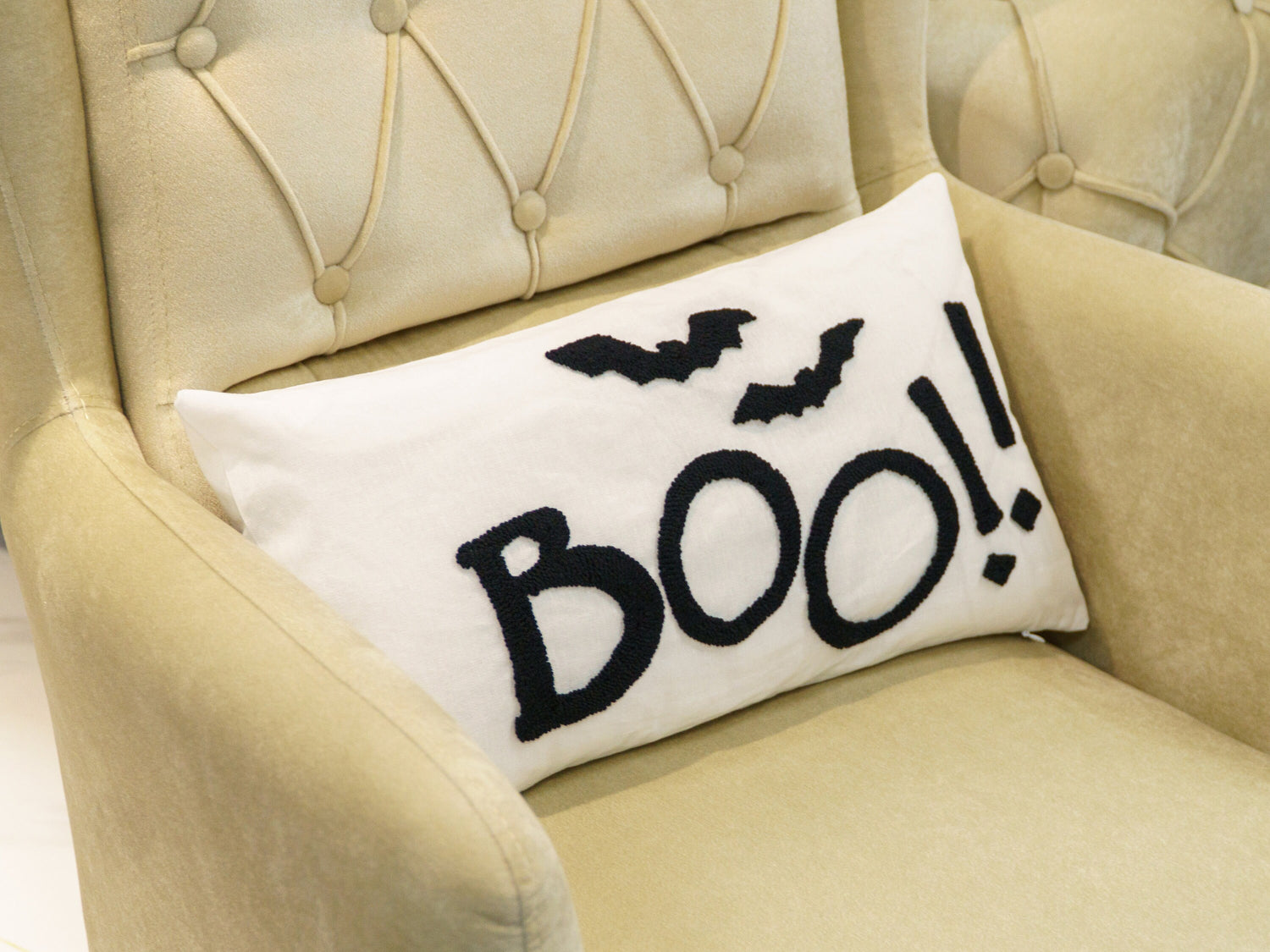 Add Some Spooky Style with a Hand-Embroidered "BOO" Halloween Pillow
