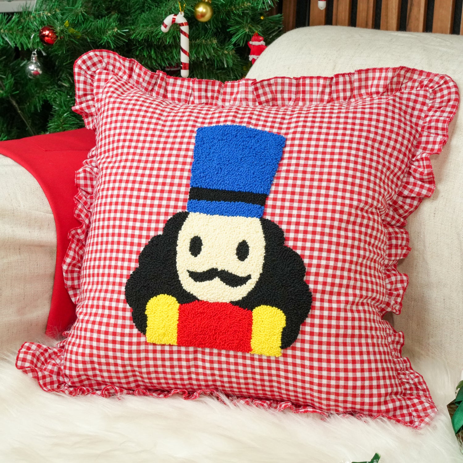 Punch Needle Merry Christmas Decorative Pillow: Custom Embroidered Holiday Decor