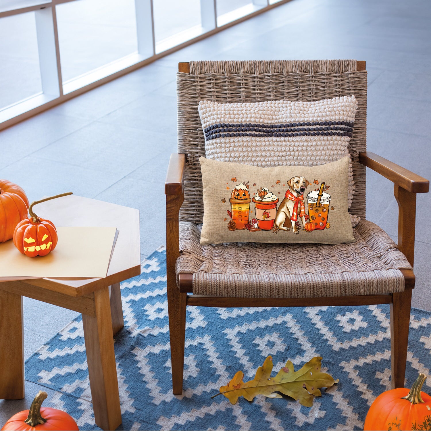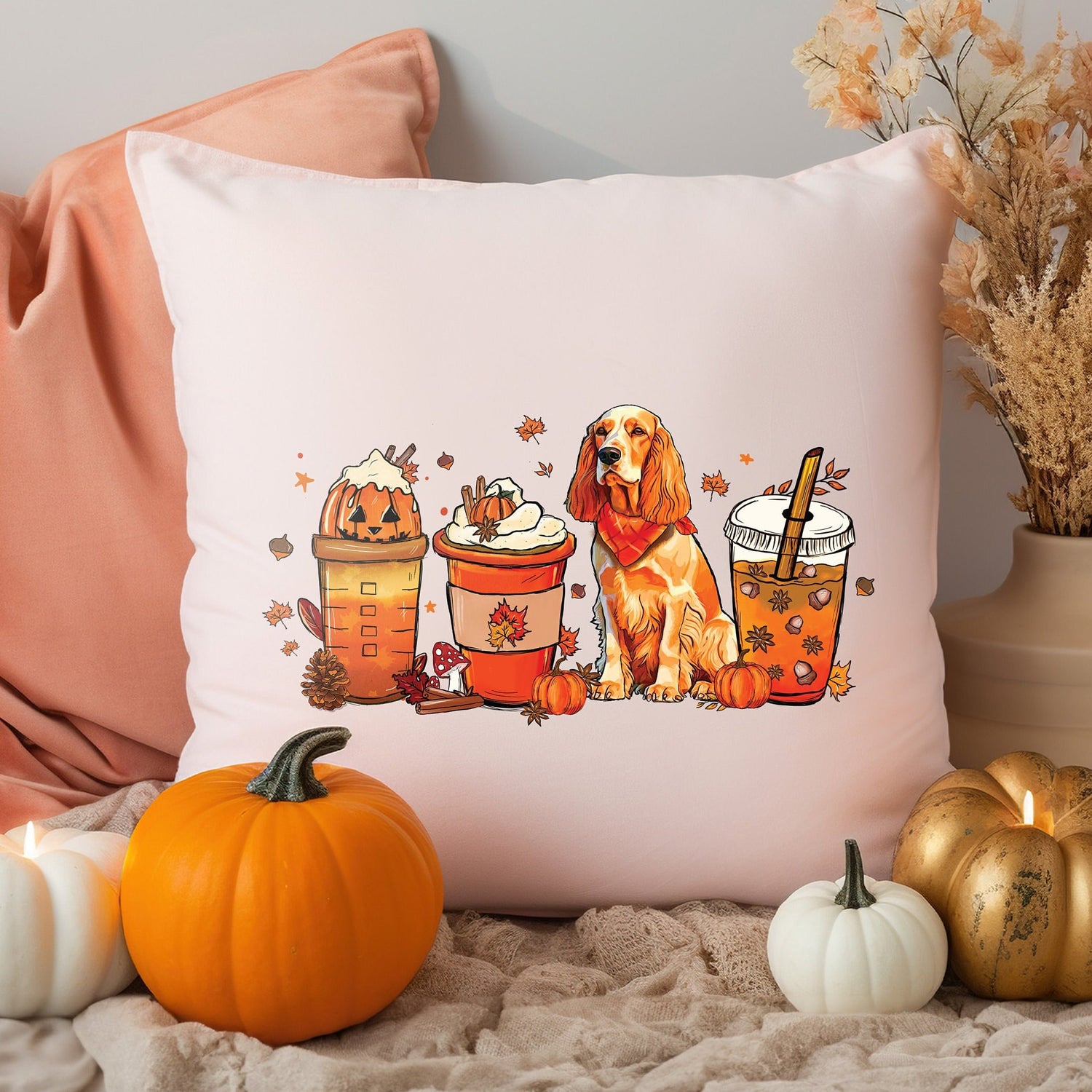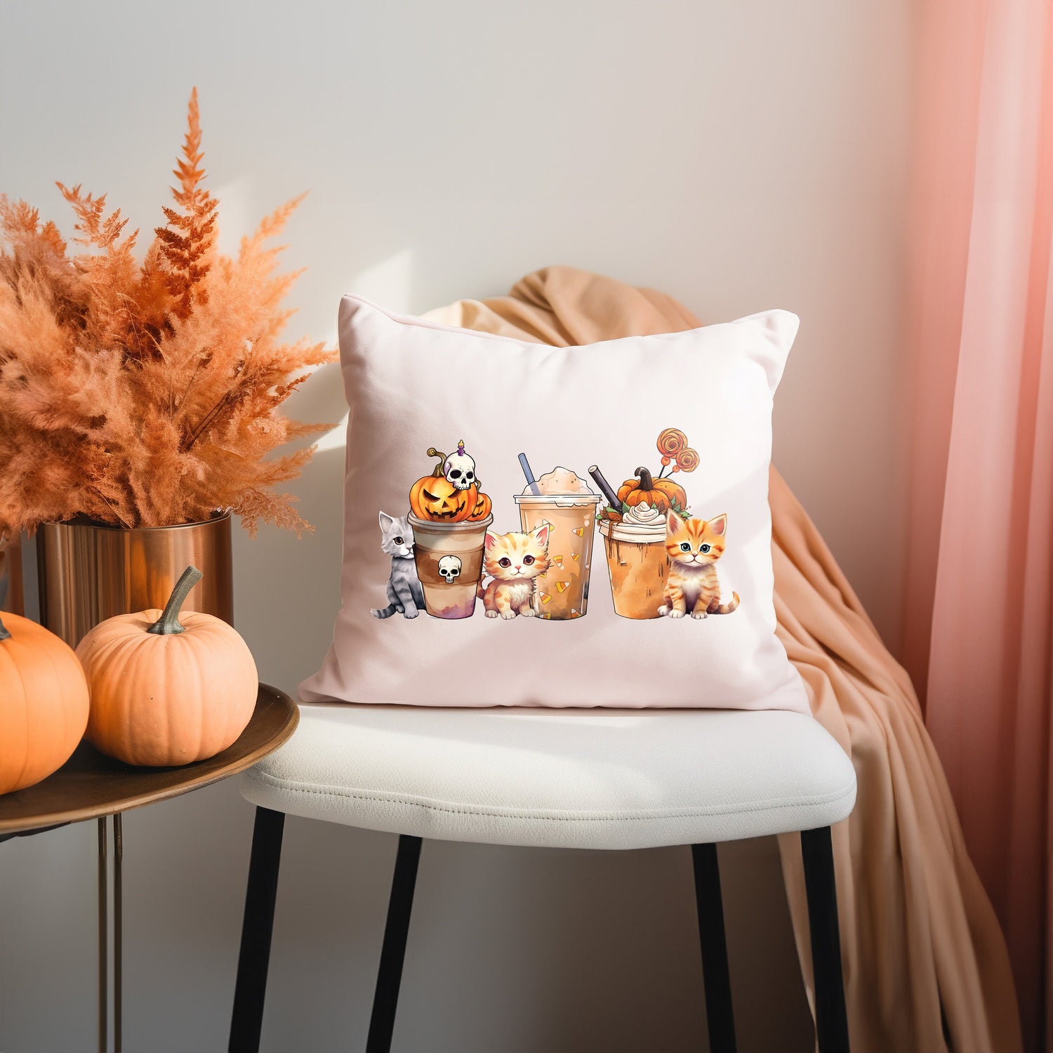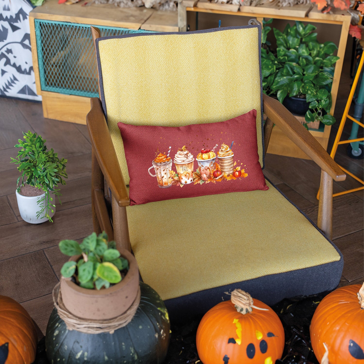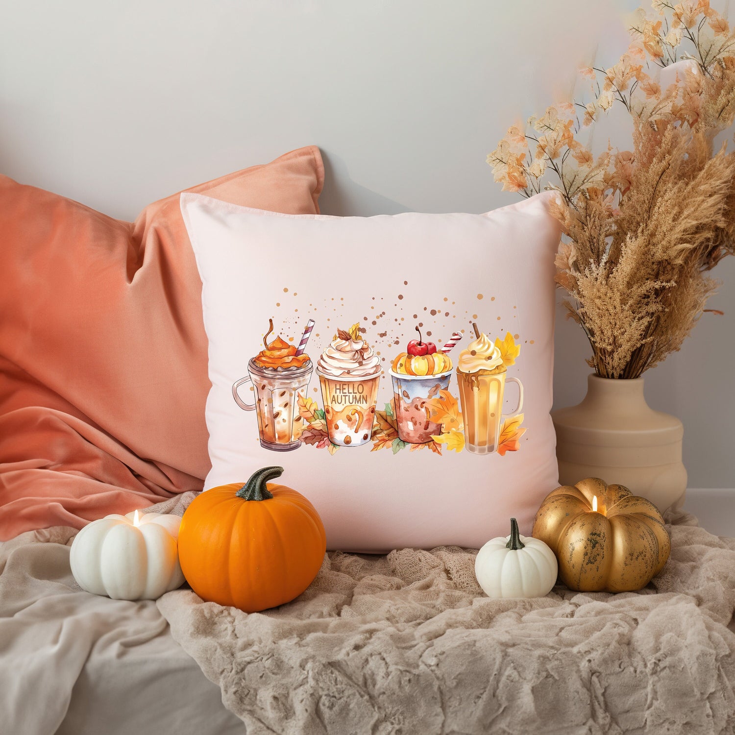 Fall Decoration Lumbar Pillow Cover, Autumn Decor, Pumpkin Watercolor Fall Cups Pillow, Thanksgiving Decor, Halloween Decor, Fall Season