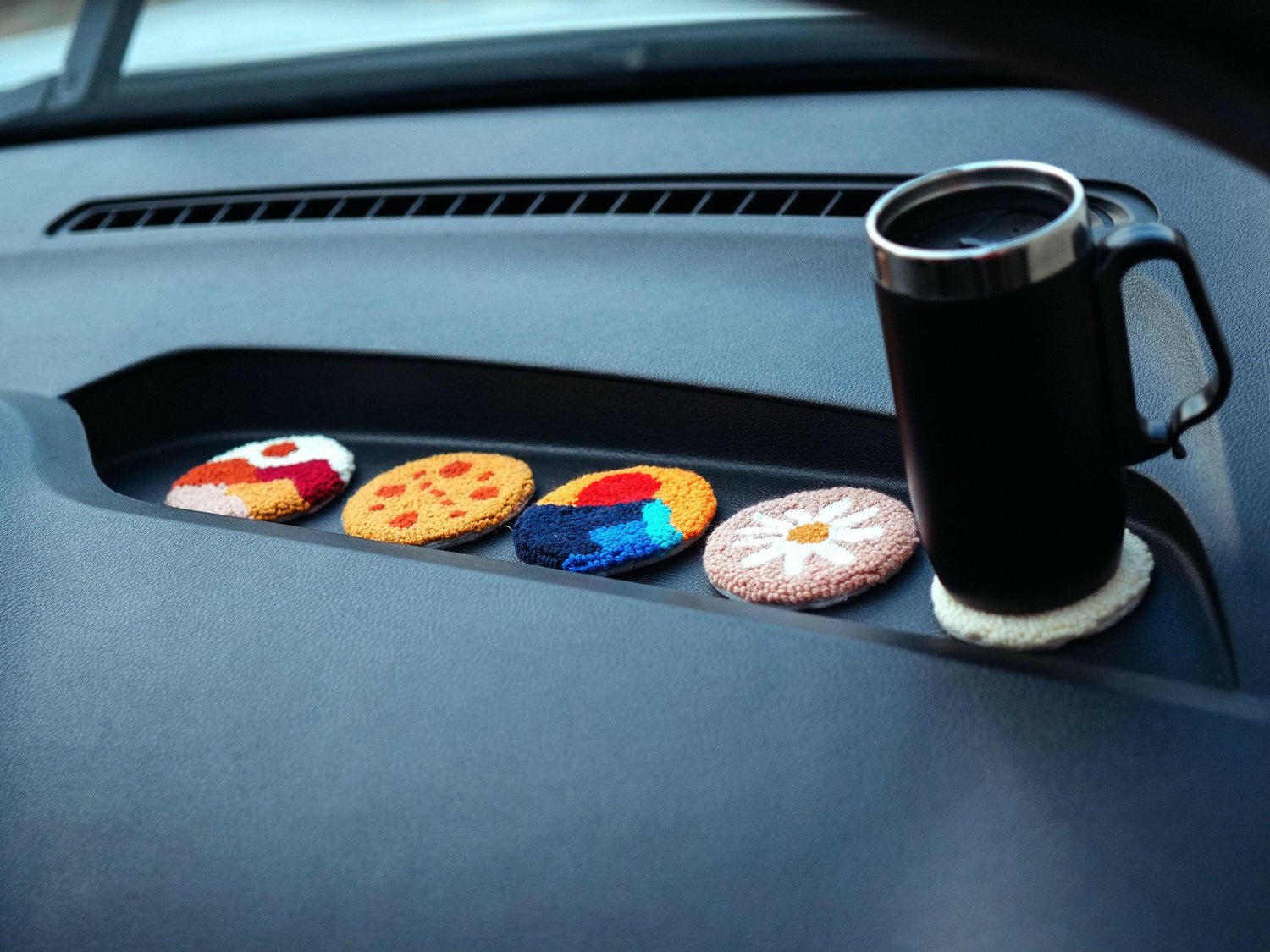 Boho Punch Needle Coasters Set, Tufted Mug Rug, Boho Home Decor, Car Decorations, Cute Gift for Her, Y2k Decor, Teen Room Boho Table Decor