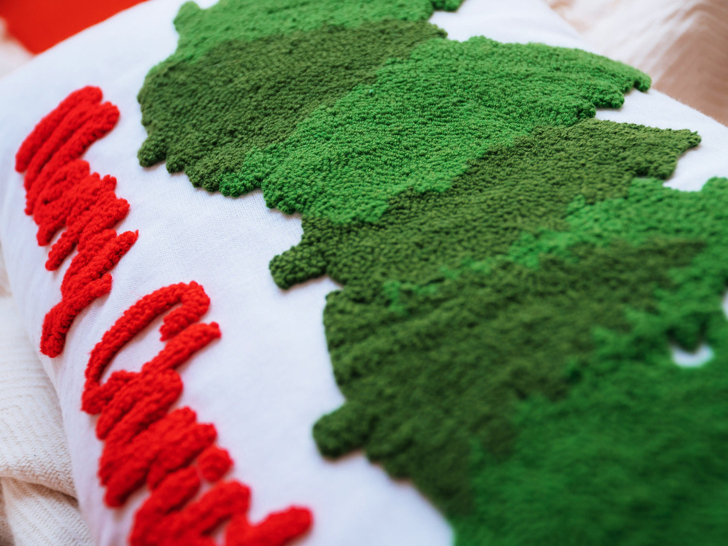 Embrace the Cozy Charm of Winter with a Hand-Embroidered Christmas Tree Pillow