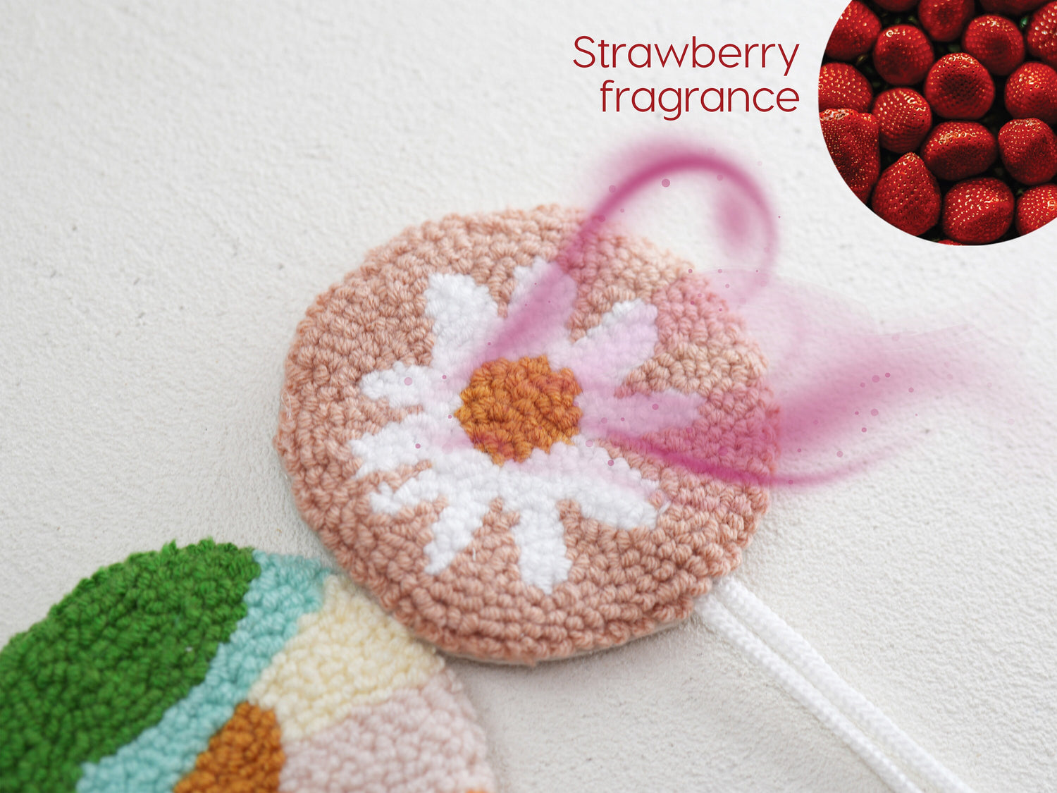Give your car a personalized touch with this charming handmade car mirror hanger, featuring intricate punch needle embroidery. It's a fun and unique way to add a little personality to your ride, making it a perfect gift for yourself or a friend.