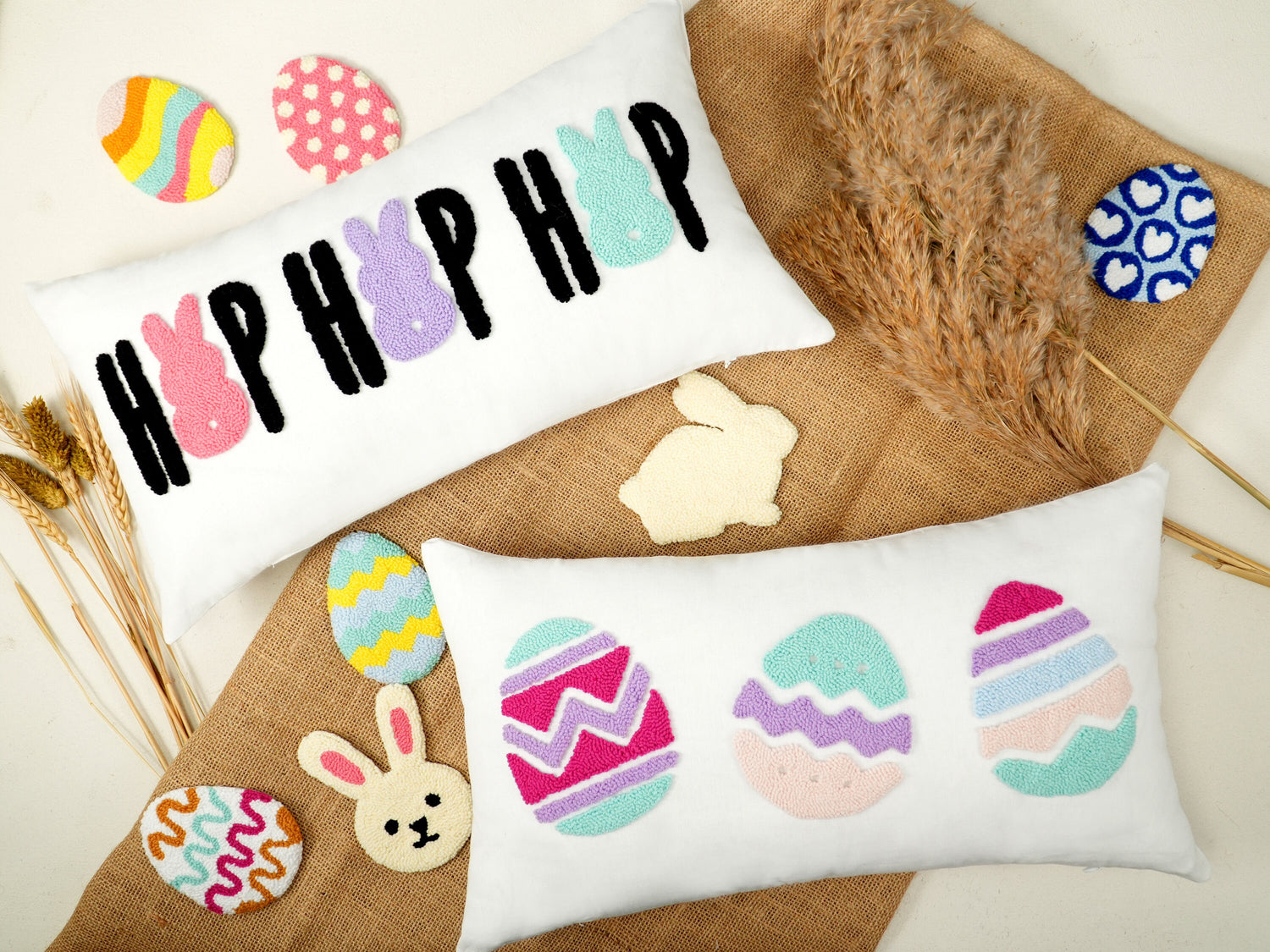 Embroidered Easter Egg Pillow, Custom Punch Needle Spring Decorations, Cute Easter, Easter Peeps Pillow, Easter Basket, Easter Gift Idea