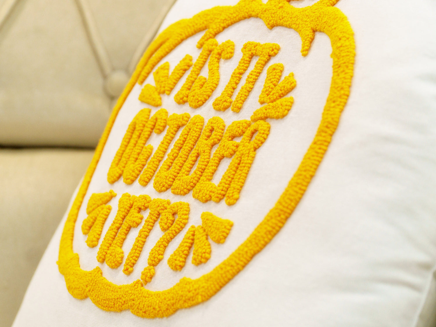 Embroidered October Pumpkin Pillow, October Decor, Fall Pumpkin Decor, Fall Decorations, Punch Needle Fall Decor, Fall Pillow, Halloween
