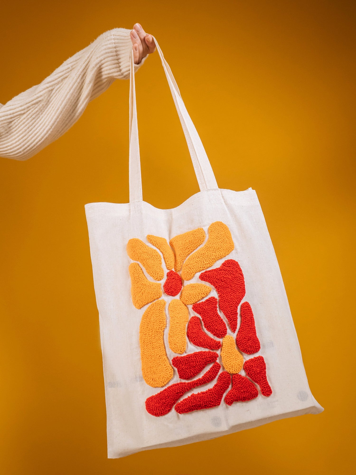 Carry your essentials with a touch of handcrafted charm! This one-of-a-kind tote bag, adorned with intricate punch needle embroidery, is the perfect way to elevate your everyday style and showcase your love for unique, eco-conscious accessories.