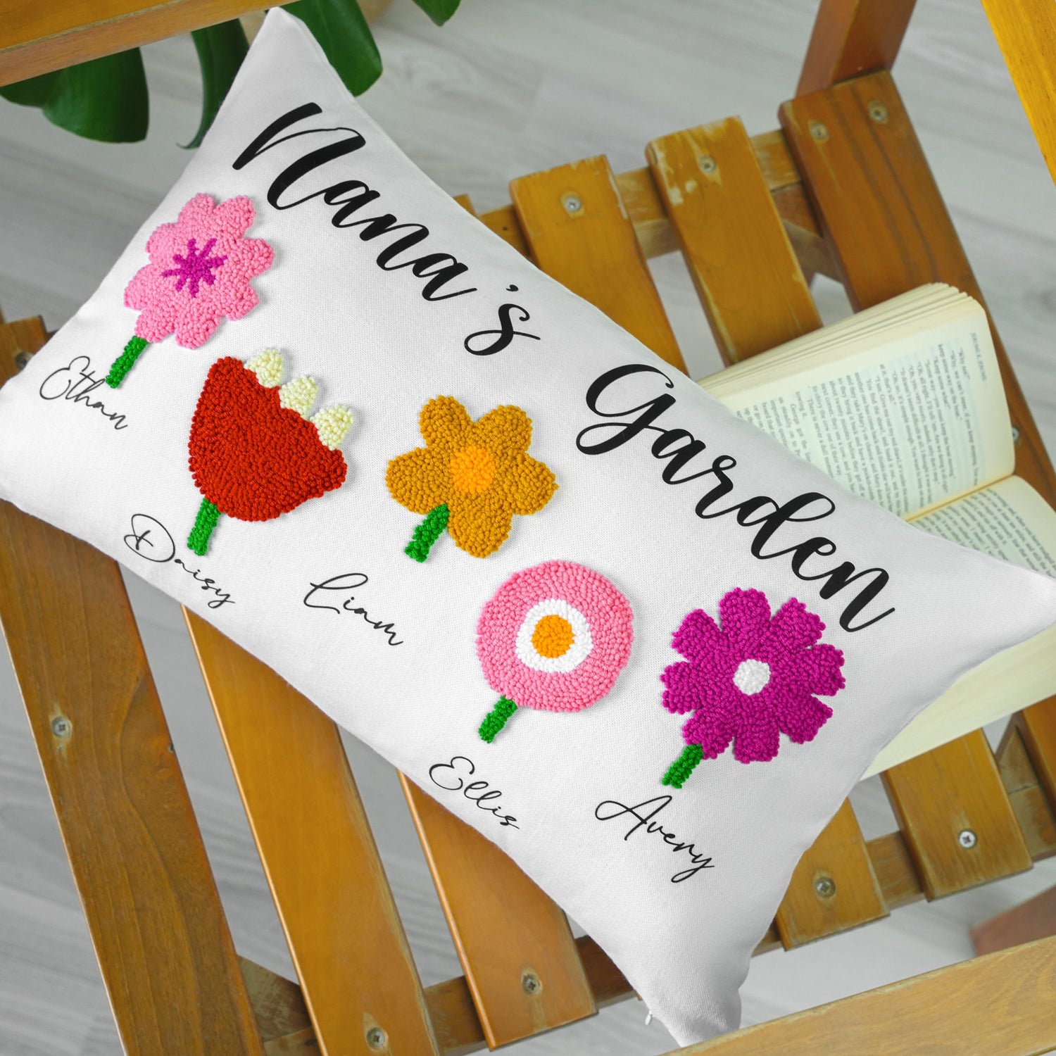 Grandmas Garden Punch Needle Pillow, Mothers Day Birh Flower Gift, Personalized Names, Nanas Garden, Custom Mom Gift Idea, Custom Cushion