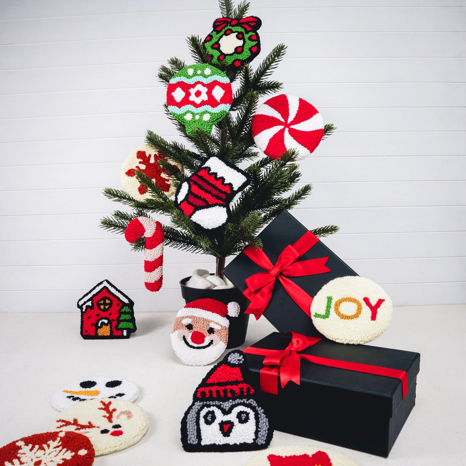 Handmade Christmas Punch Needle Coasters, Set of Coasters, Christmas Home Decor Gift Idea, Christmas Charm, Xmas Party Decor, Ornament