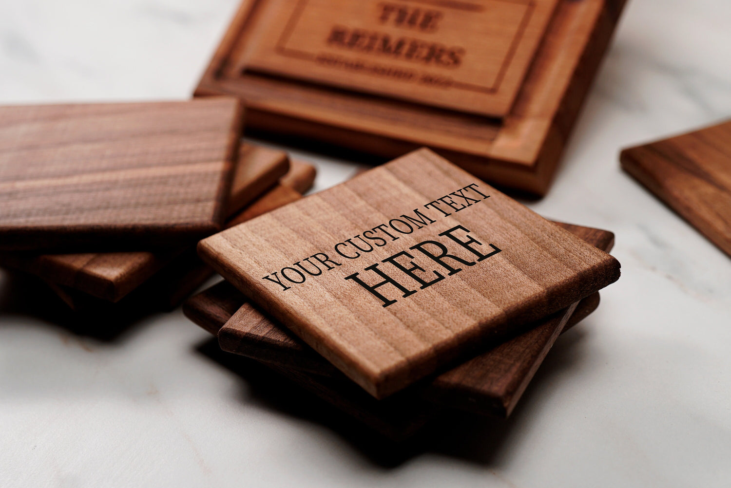 Christmas Special: Add a set of 4 engraved wooden coasters to your order for a complete gift set.