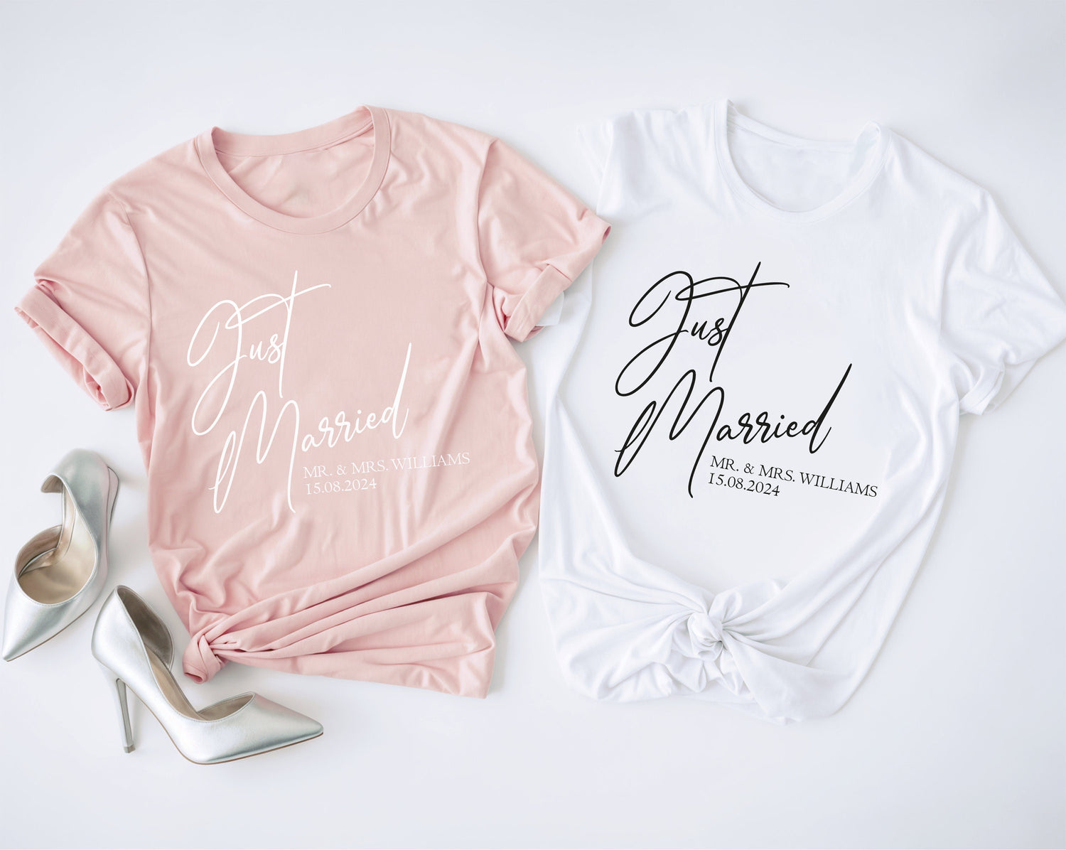 Ready to celebrate your wedding in style? Order your personalized "Just Married" shirts today!