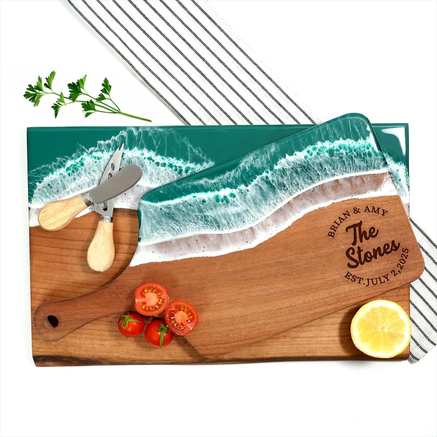 Custom Ocean Resin Cutting Board, Personalized Charcuterie Board, Wood Serving Tray, Rustic Kitchen Decor, 5th Anniversary Gift, Couple Gift