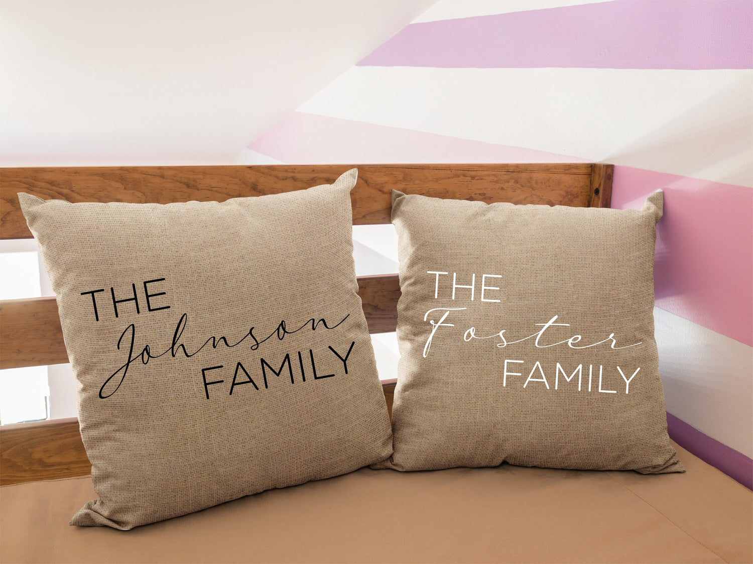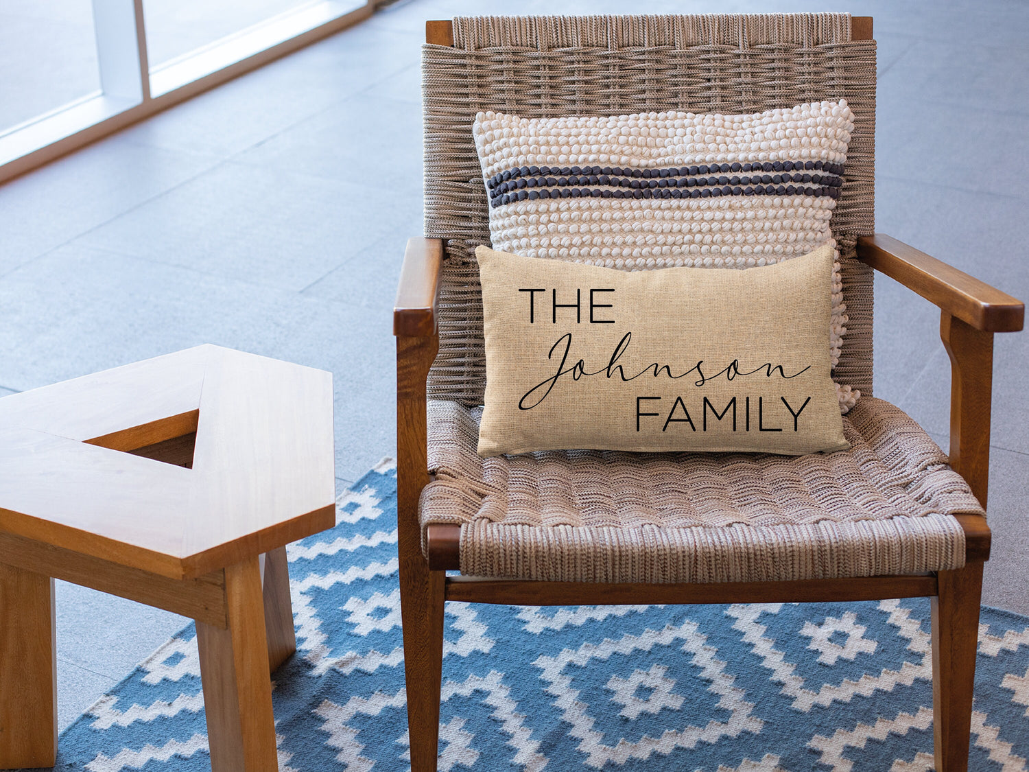Add a touch of rustic charm and personal style to your home with this custom Last Name Pillow. Perfect for bringing a sense of family togetherness to your living room, bedroom, or even as a thoughtful housewarming gift.