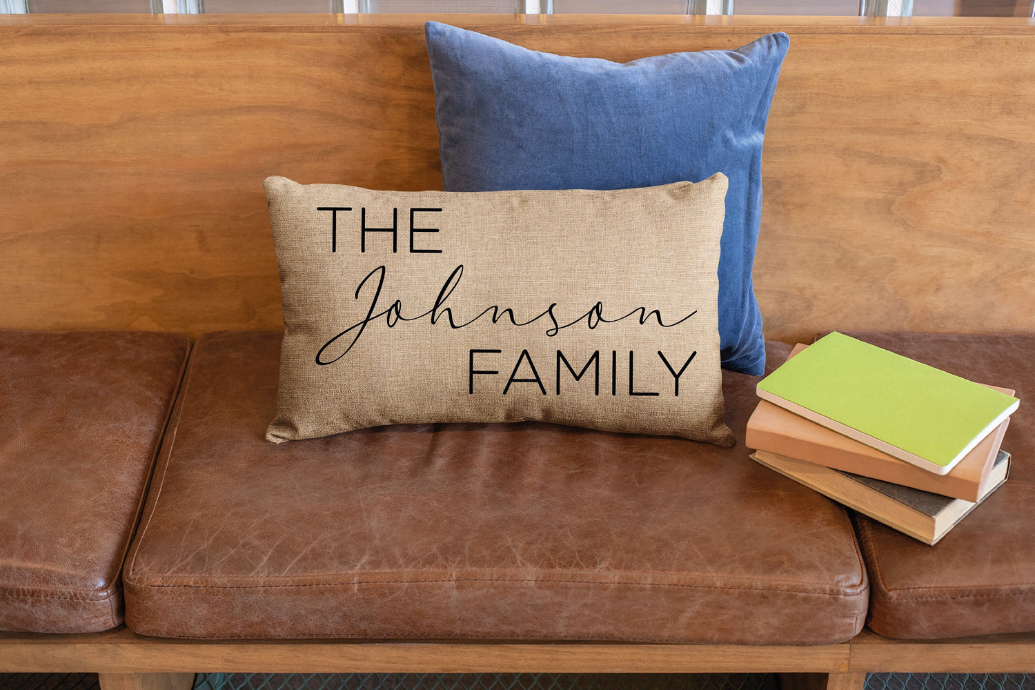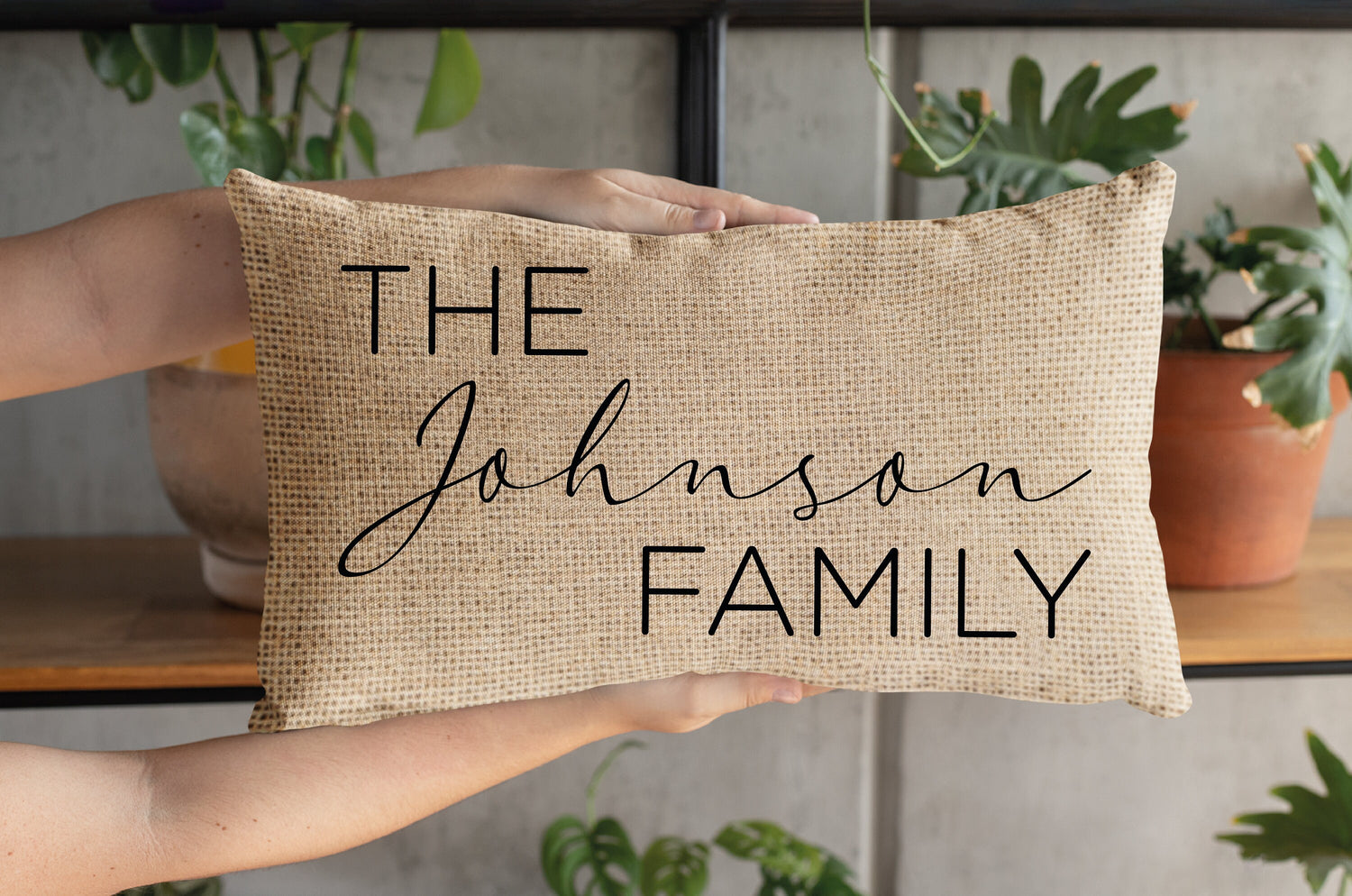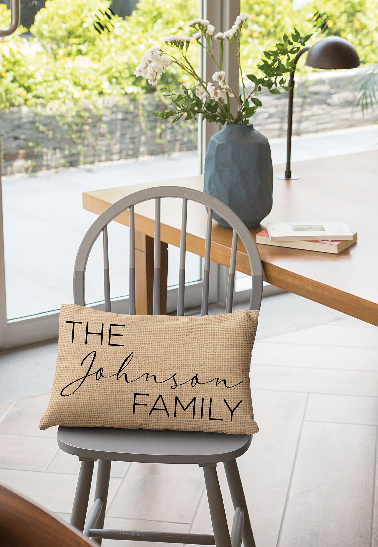 Last Name Pillow, Burlap Lumbar Pillow, Custom Burlap Pillow, Personal – ArriaHome LLC