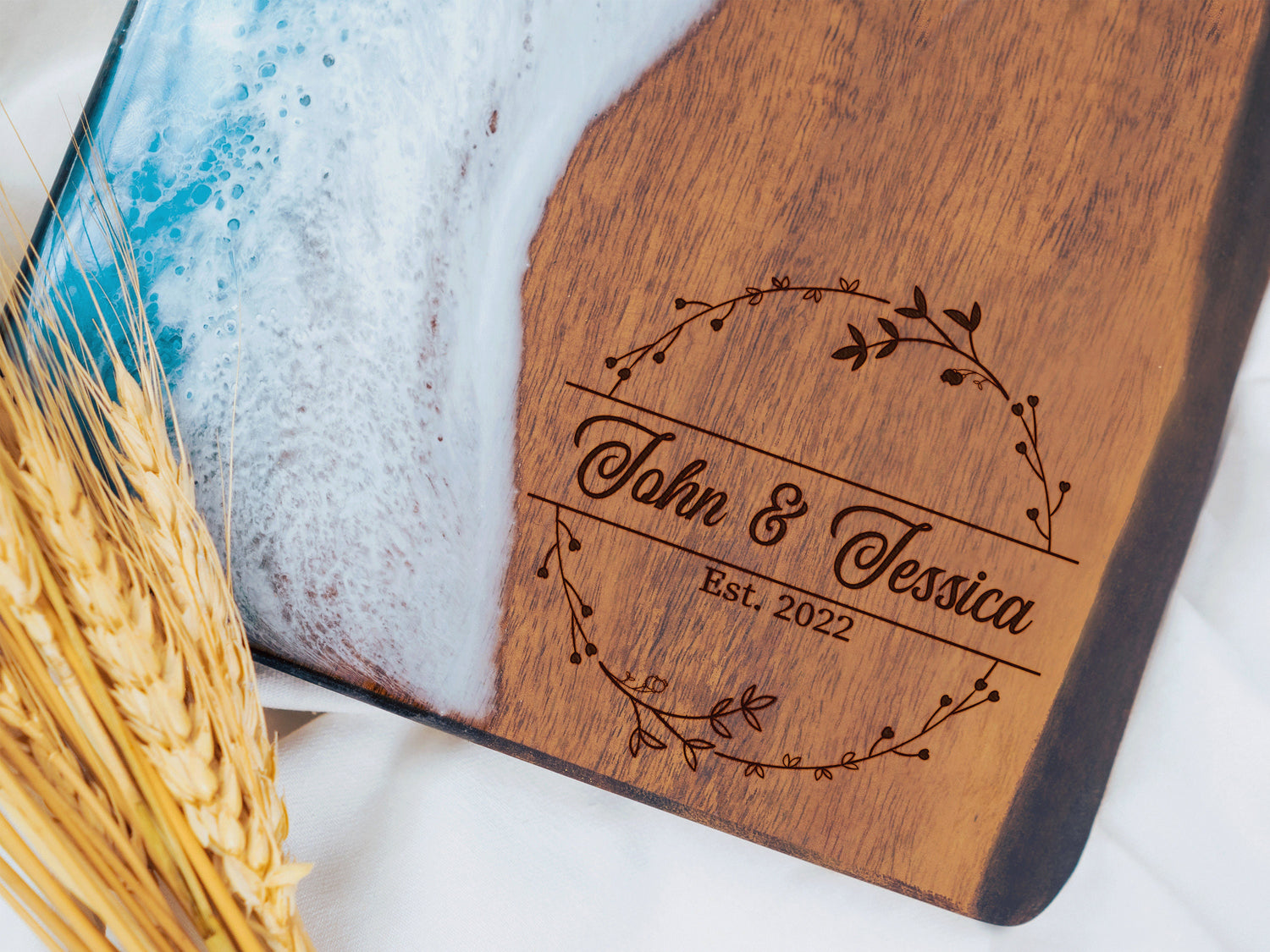 Walnut Resin Live Edge Cutting Board, Personalized Wedding Favor for Newly Wed, Anniversary Gift for Couple, Unique Engagement, Gift for Her