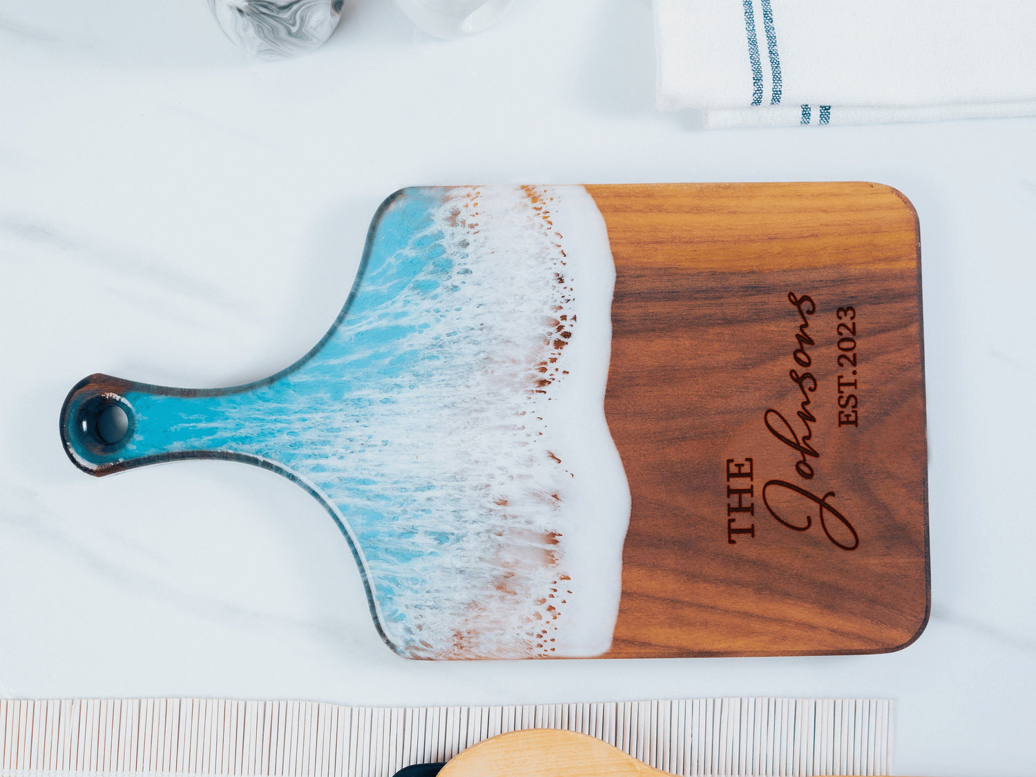 Ditch the Ordinary, Gift Handcrafted: Personalized Resin & Walnut Serving Boards