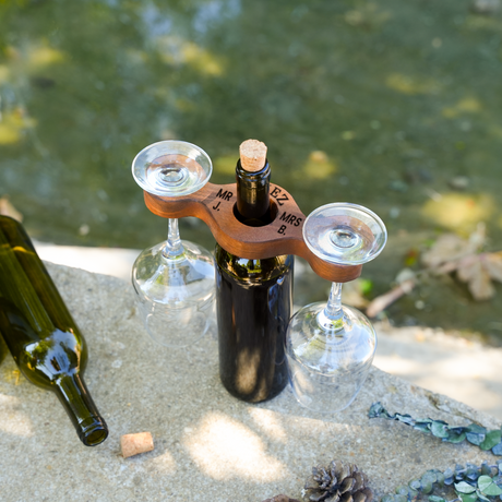 Personalized Wooden Wine Caddy: Glass and Bottle Holder, Tabletop Wine Display
