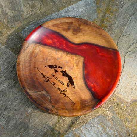 597.00TLUnit price /UnavailablePersonalized Walnut Epoxy Wedding Plate: Engraved Decorative Tray with Names & Date