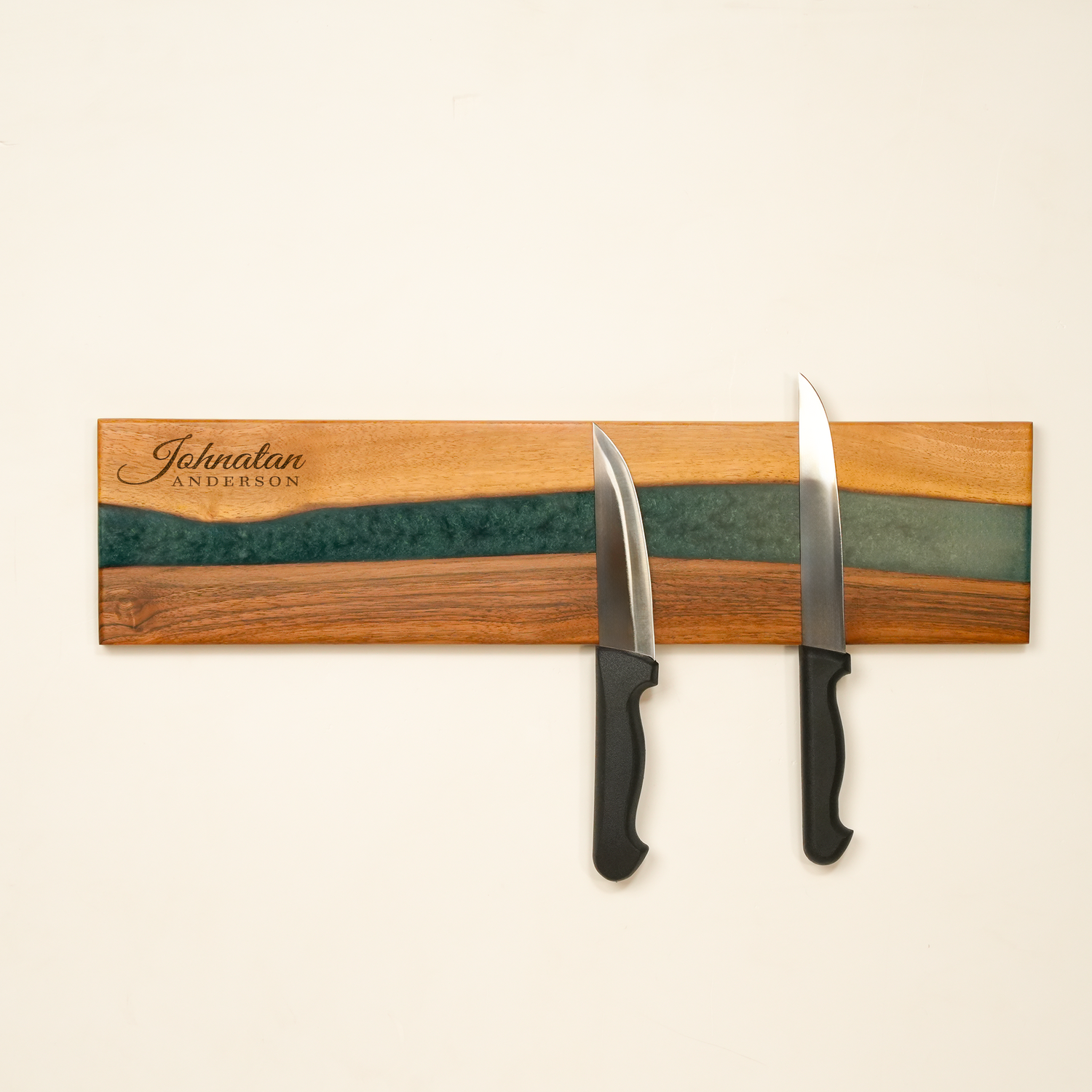 Custom Walnut & Resin Magnetic Knife Block | Engraved Kitchen Organizer & Display
