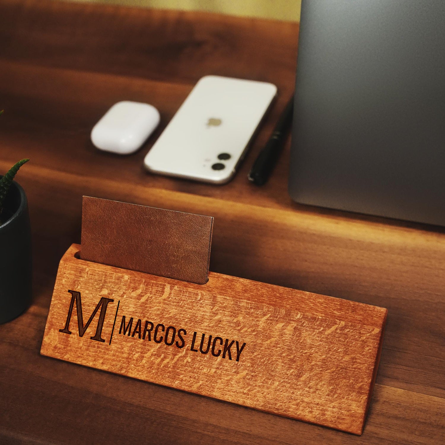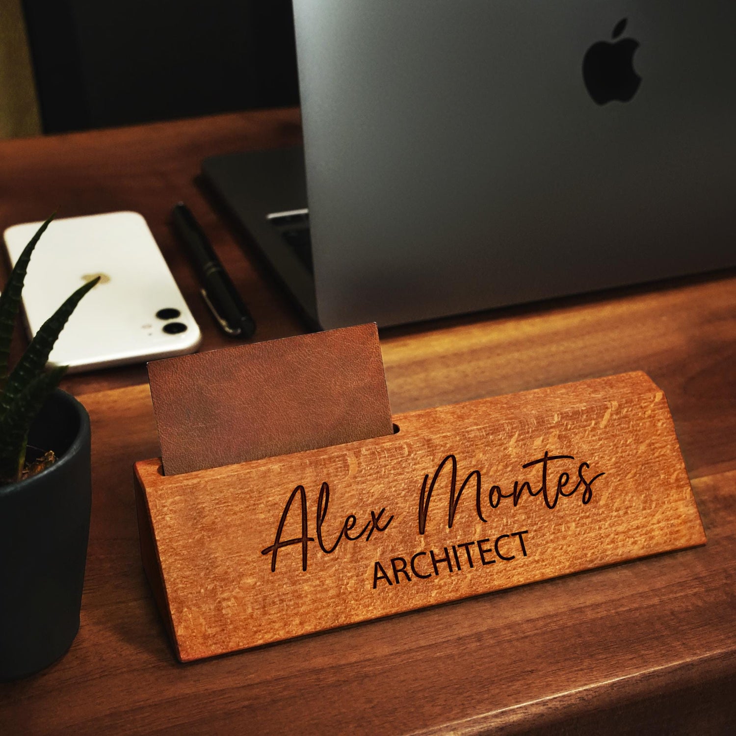 Custom Office Decor Wooden Desk Name Plate, Business Desk Plaque, Graduation Gift, Personalized Wood Desk Name, Business Card Holder Gifts