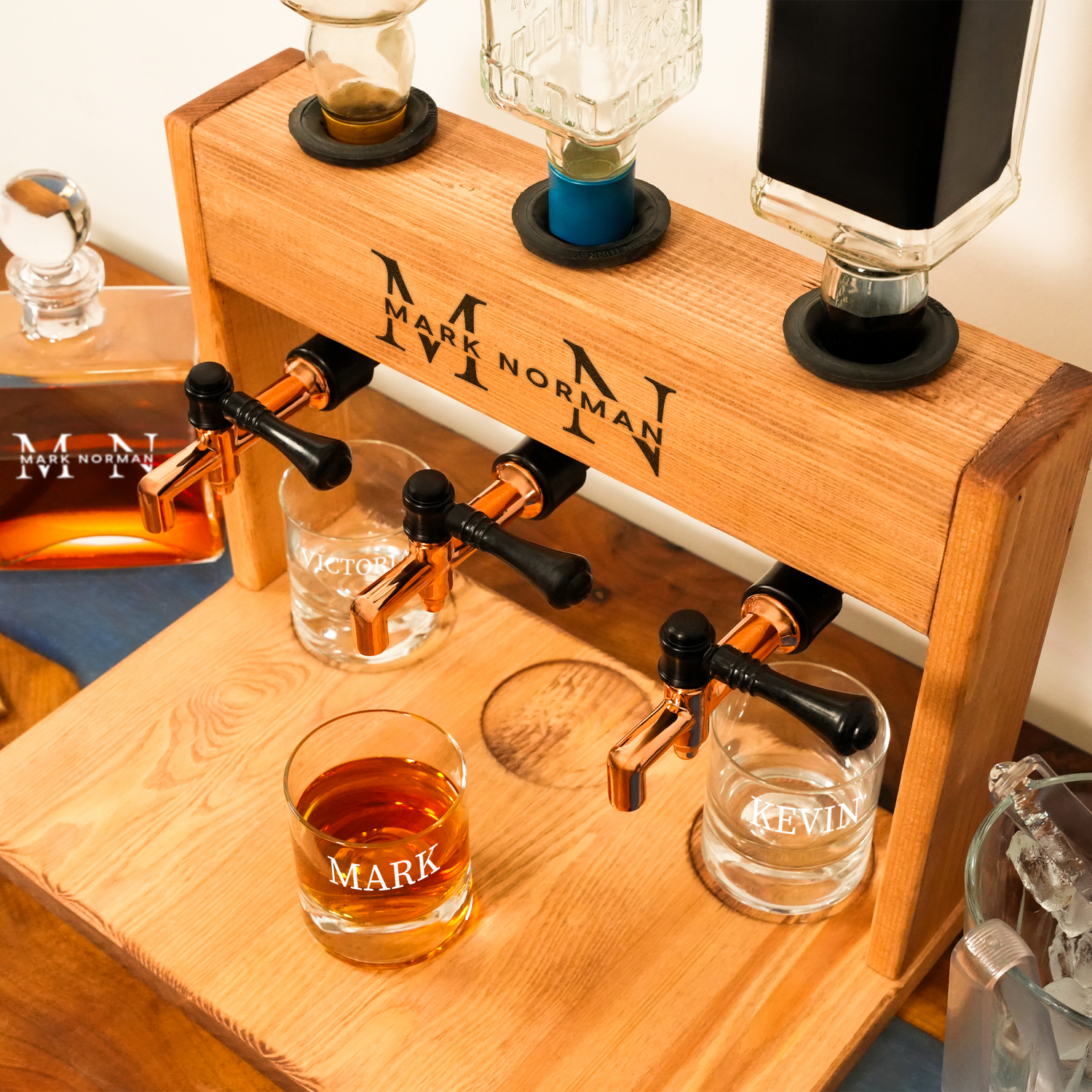 Engraved Whiskey Dispenser, Personalized Wood Liquor Dispenser, Whiskey Gift for Dad, Fathers Day Gift, Grandpa Home Bar Gift, Gifts for Men