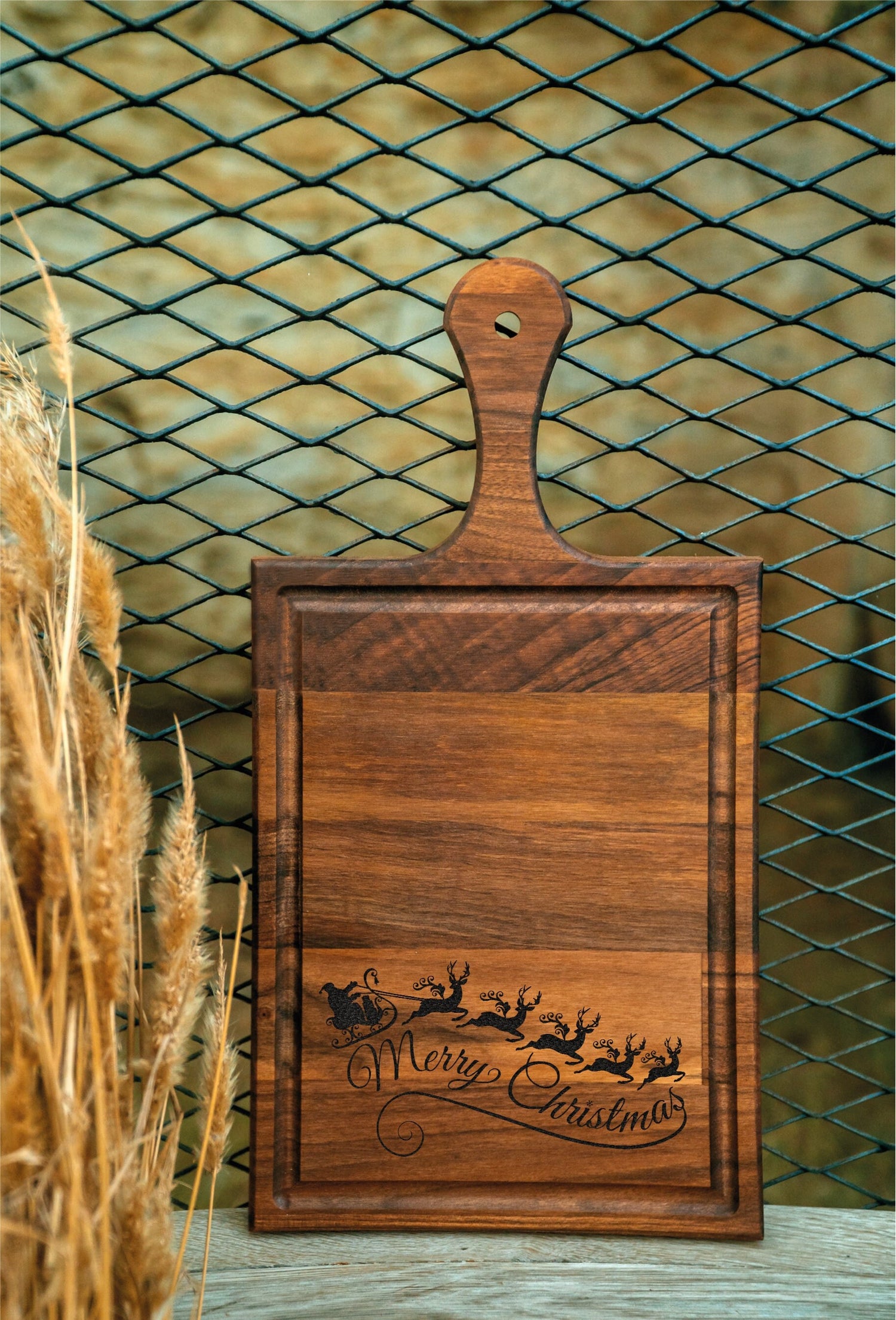 Bring the festive spirit of Christmas into your kitchen with this beautiful and personalized cutting board. This unique cutting board is perfect for serving up holiday treats, creating a festive atmosphere, or making a thoughtful gift for friends and family.