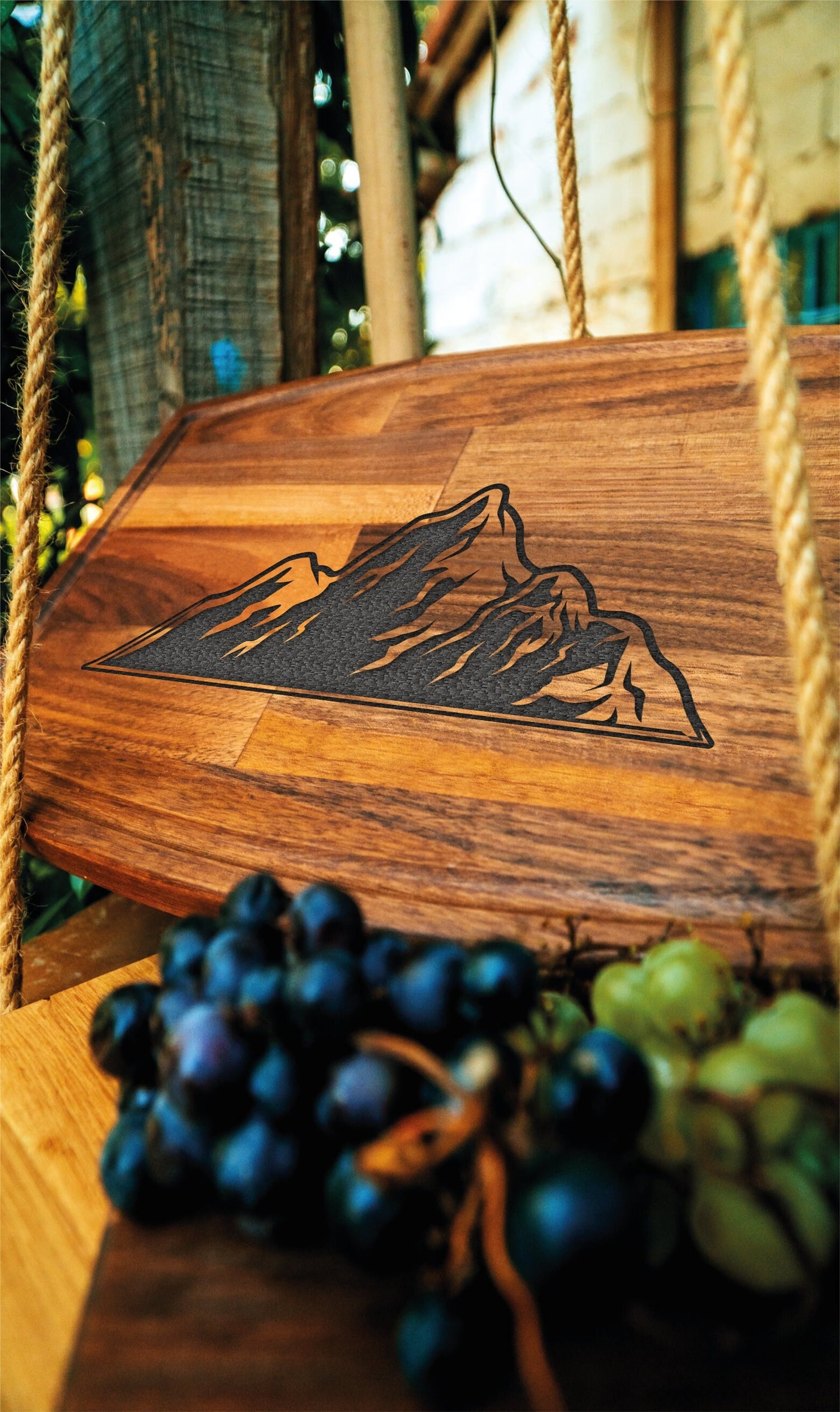 Bring the beauty of the mountains into your home with this unique and personalized cutting board. This handcrafted board is perfect for serving up appetizers, cheeses, or simply adding a touch of rustic charm to your kitchen decor. It makes a thoughtful gift for housewarmings, holidays, or any occasion that celebrates nature and style.
