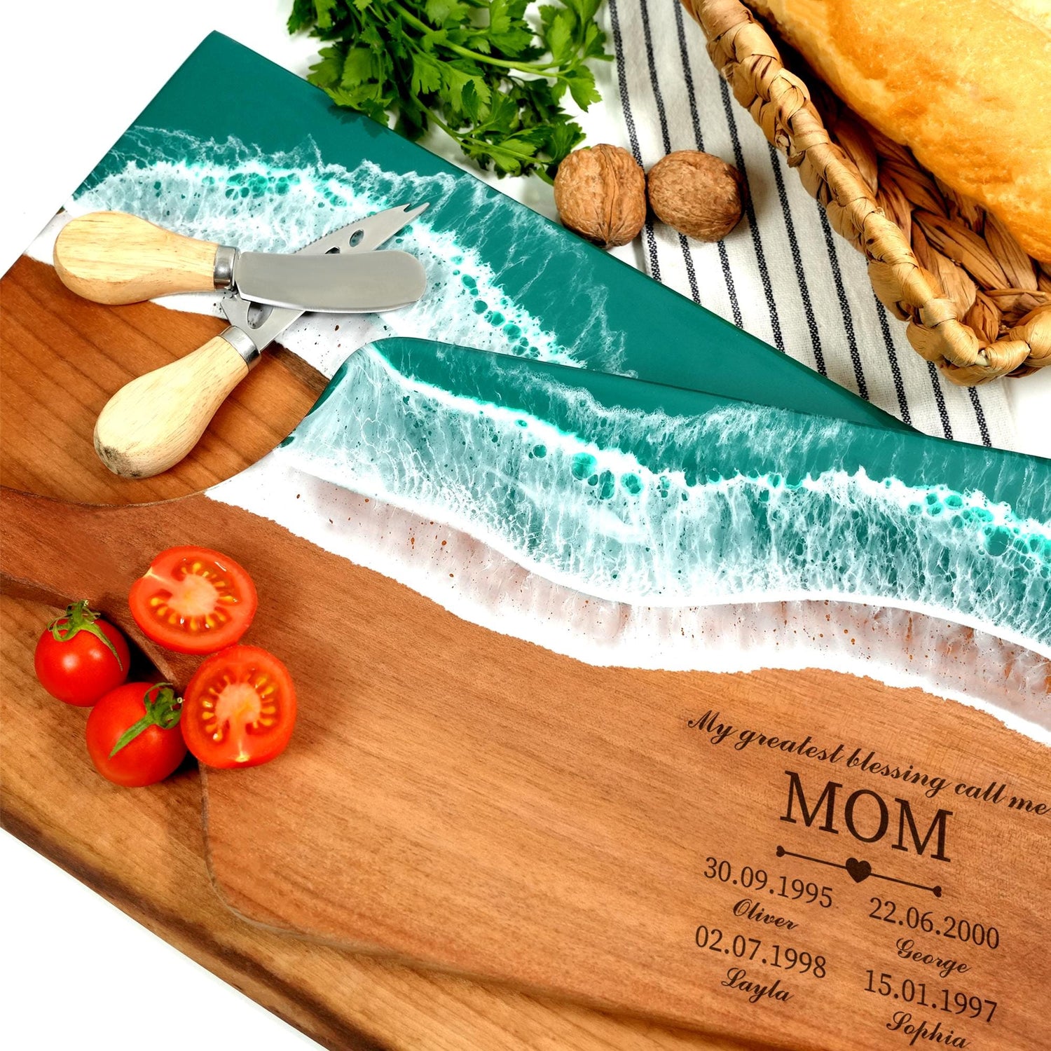 Celebrate the women you cherish with these unique, handcrafted serving boards. Choose between the serene beauty of an ocean-inspired resin design or a personalized birth flower charcuterie board, creating a thoughtful and lasting gift for Mom and Grandma.