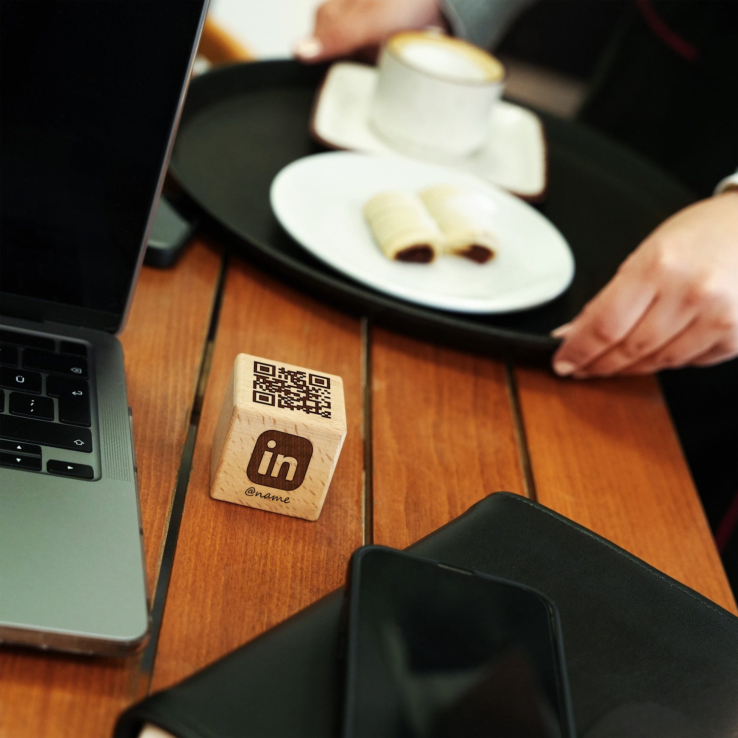 Enhance your space with these custom wooden QR cubes that combine style and functionality.