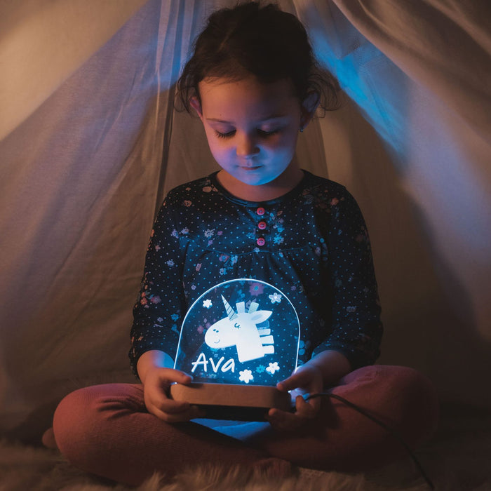 Begin by choosing the night light style – pick the one that resonates most with your friend from a selection of ten unique styles. Next, choose the acrylic color from the six available options to harmonize with the baby's room. Now, for the most enjoyable part, you can personalize the acrylic with the chosen features. Select from twenty diverse design options suitable for both baby girls and boys, and adorn it with the baby's name. Additionally, you have the flexibility to choose the LED light colors for the night light, either opting for a warm white hue or letting it cycle through all colors.