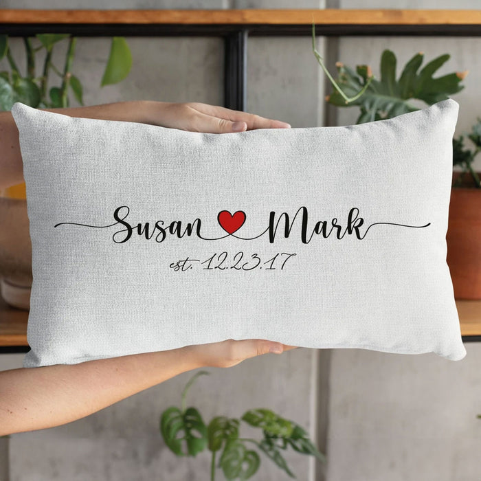 The room is filled with laughter and excitement, and you see a table adorned with an array of printed pillows. You're immediately drawn to them. Each pillow features playful and sentimental quotes, inside jokes, and adorable images that reflect the journey of Sarah's love story.