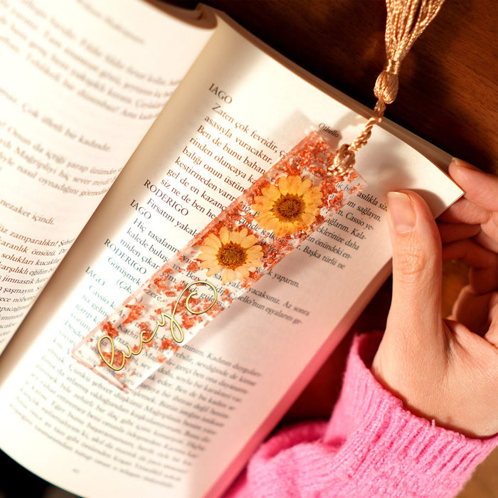 One day, as you were getting ready to start your series, there was a knock on your door. You thought it was my books, but it was a small Arria Home box. You are very surprised! Your nephew sent you a little gift to celebrate your retirement. How elegant they are! White, blue, yellow. Resin bookmarks with your favorite flowers with the words "I love you so much, auntie". You were curious and checked Arria Home right away. Your admiration increased even more when you saw how many personalization options there are and that it has a structure that allows you to make your own touches. You thought it would look great with my books. Now you are more impatient for your books to arrive.
