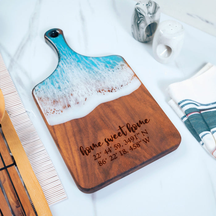 Arria Home has the solution for you. How about a resin cutting board he can use at his next upcoming barbecue party? This cutting board will be a handy addition to his culinary adventures. Our personalization options allow you to customize the board with his name, a cherished message, or an icon, all set against a stunning epoxy design reminiscent of ocean waves.
