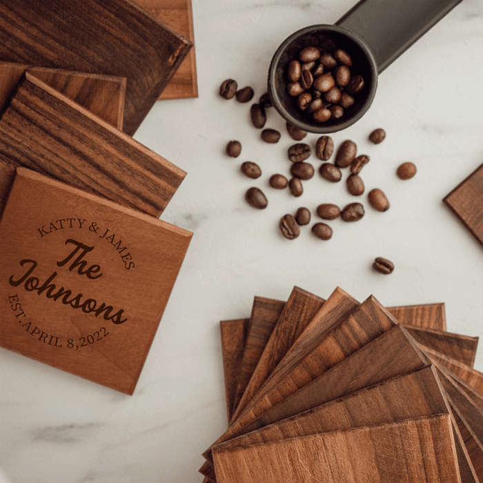 We've transformed wood's natural beauty into exquisite coasters, with 12 elegant designs that you can engrave to personalize these coasters. The designs can be additionally customized with names, monograms, or favorite icons, adding an even more personal touch.