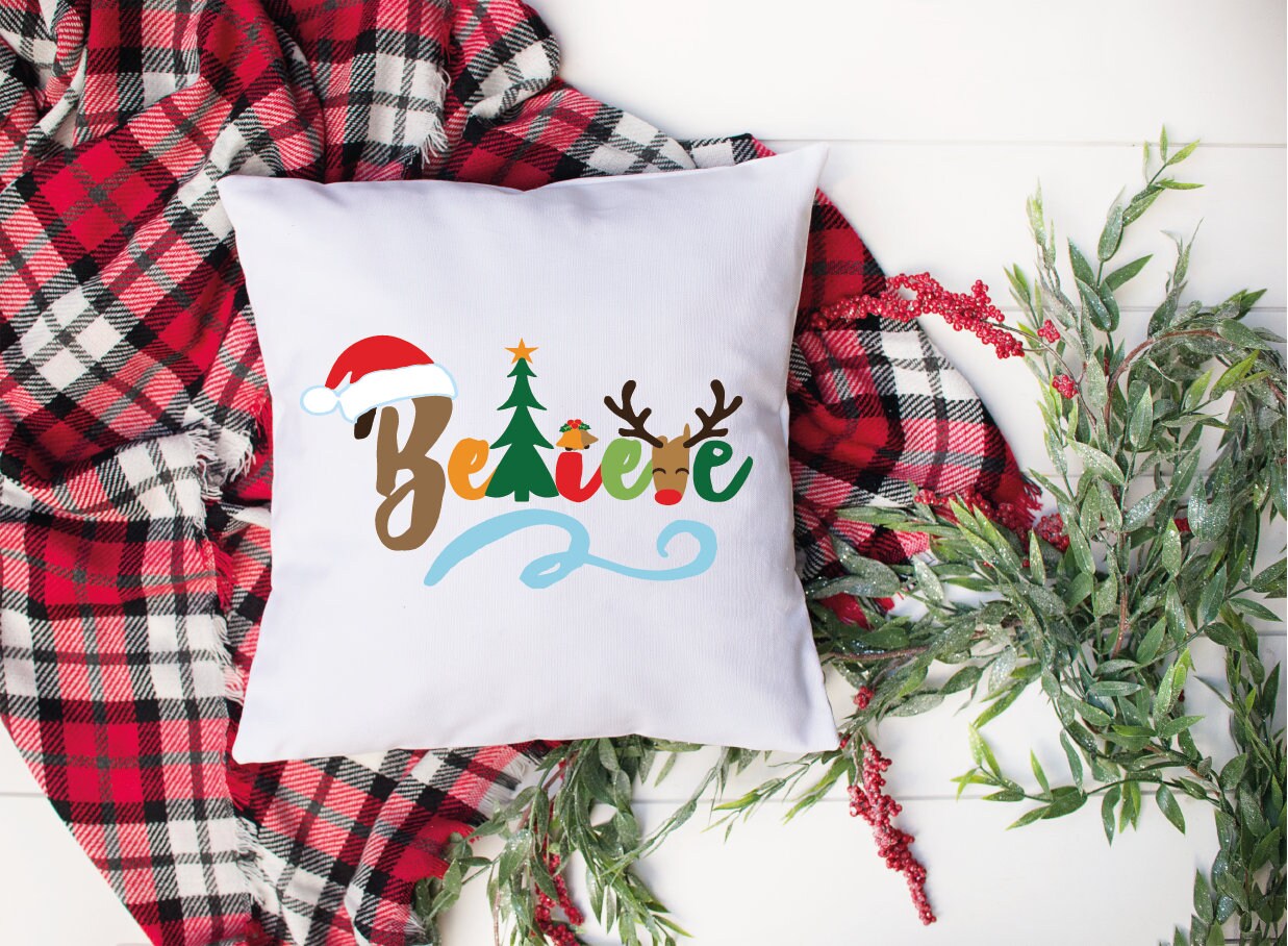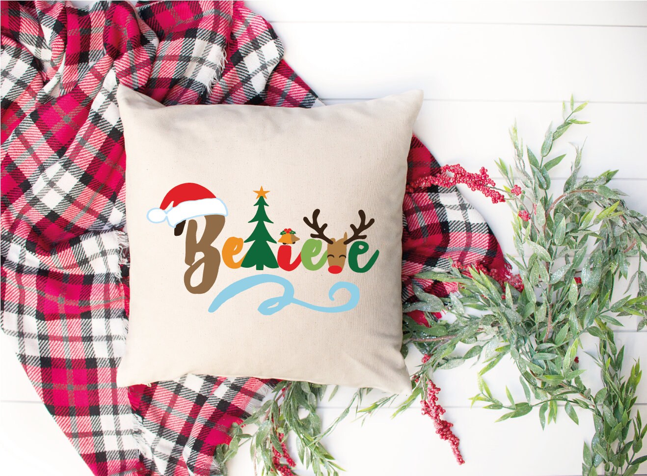 Believe Christmas Pillow Cover, Christmas Cushion, Santa Decor, Noel Cushion, Xmas Pillow Cover, Noel Decor, Merry Christmas, Holy Night